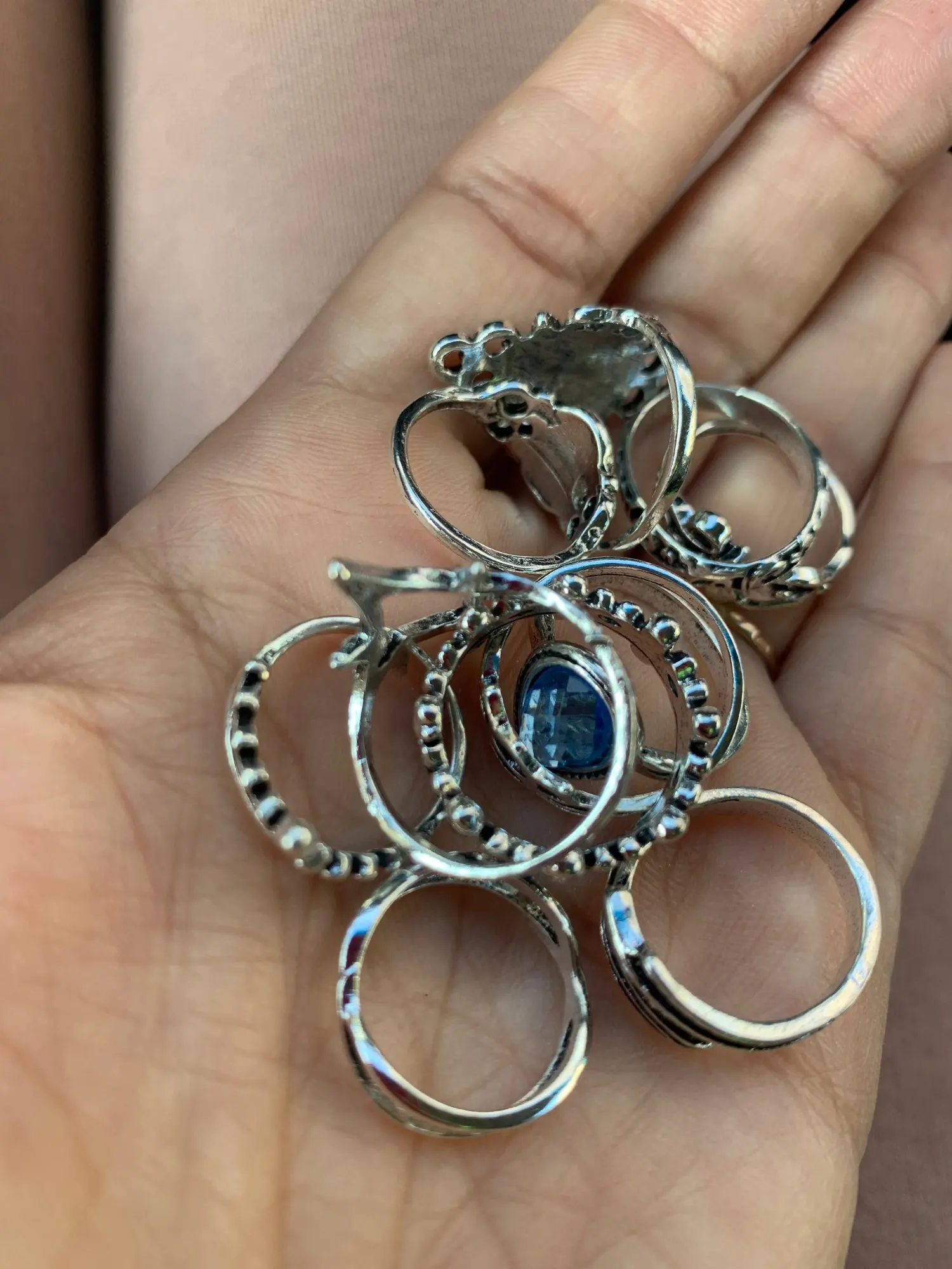 Набор Колец женских серебряных в богемном стиле, 15 шт.компл.