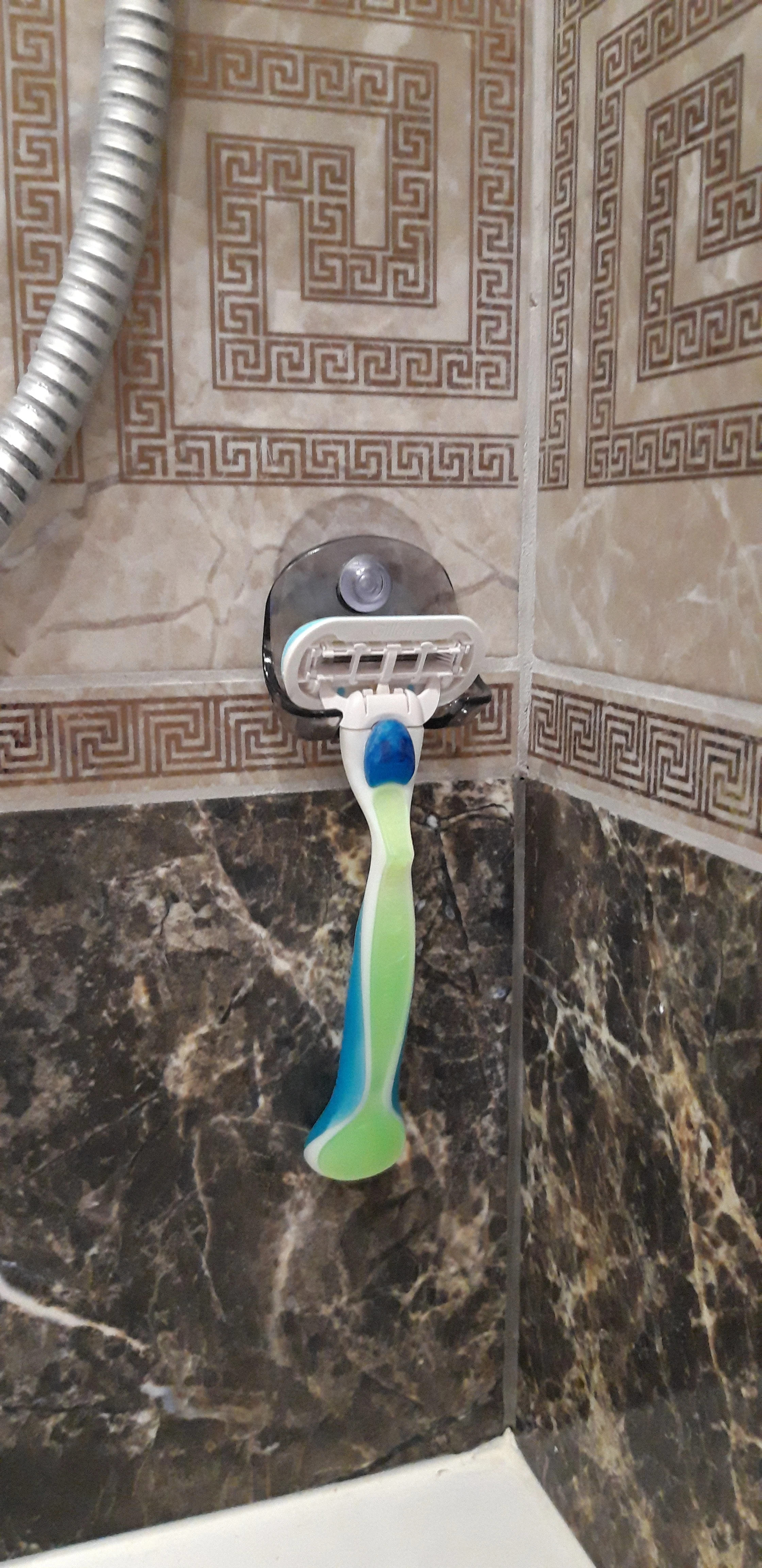 Прикольная штука, отлично приклеилась к стенкам душевой кабины, станок бритвенный держится на ней хорошо, женский жилет и мужской вариант тоже. рекомендую