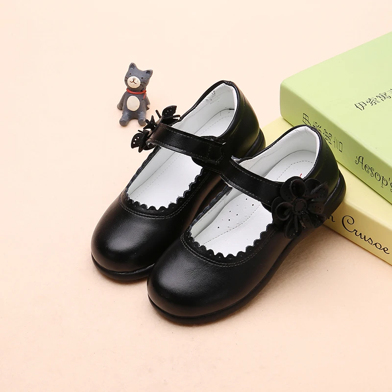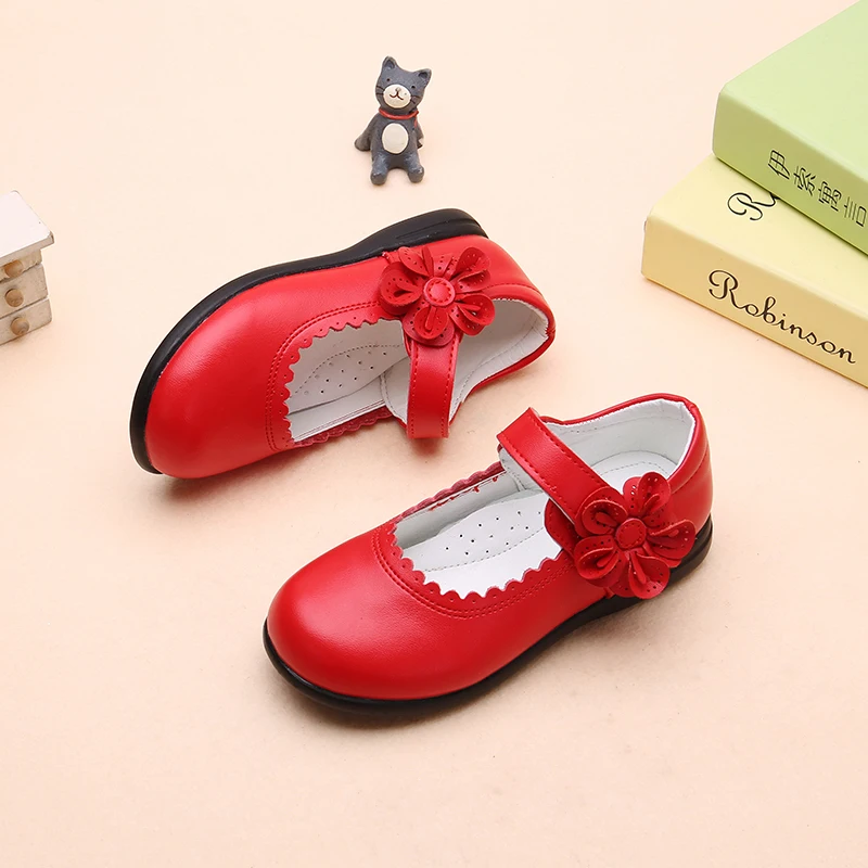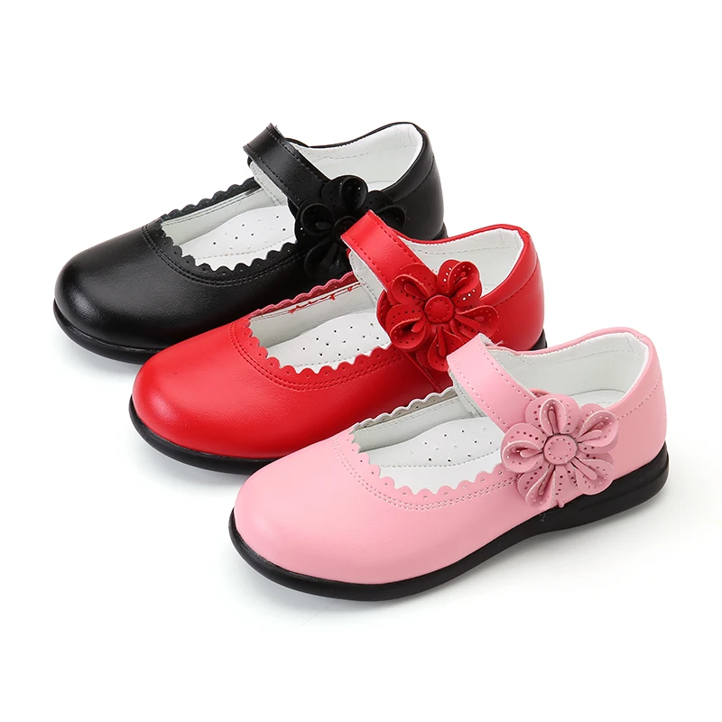 Новинка 2020, детские кожаные туфли с цветами для девочек, красные, черные, розовые туфли для школы, вечеринки, свадьбы, танцев