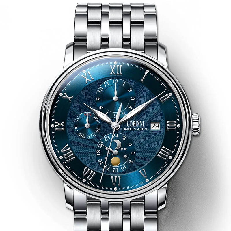 Часы мужские механические с сапфировым стеклом и лунной фазой, L102...