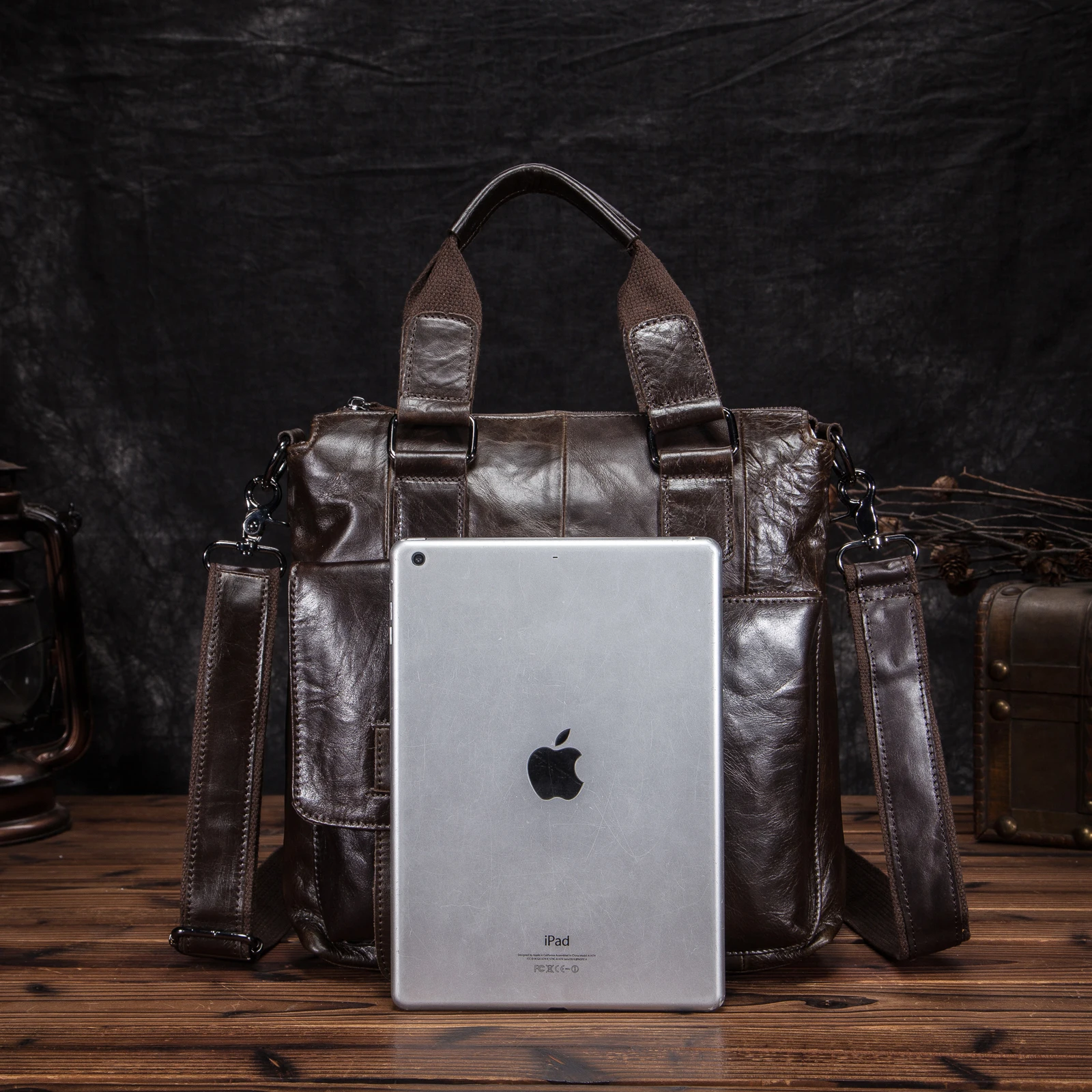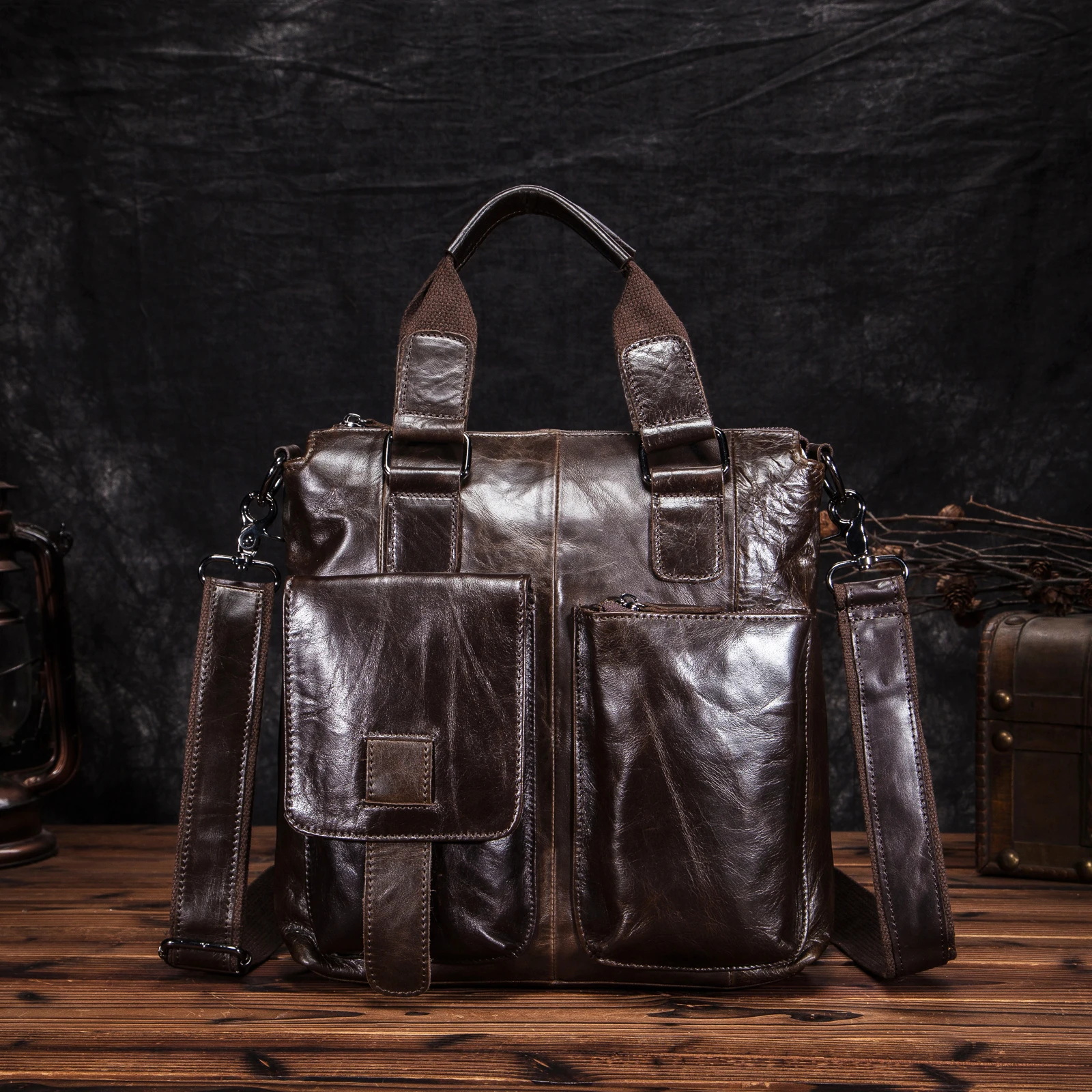 Мужской винтажный деловой портфель из масляной вощеной кожи в стиле ретро, кейс для ноутбука 12 дюймов, атташе, портфель, сумка-тоут, сумка-мессенджер через плечо, женская