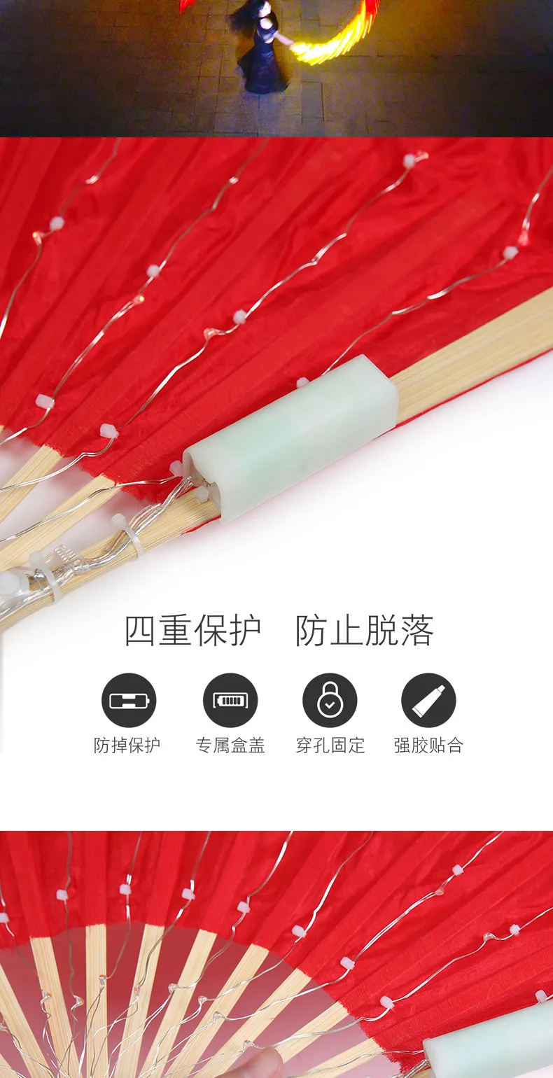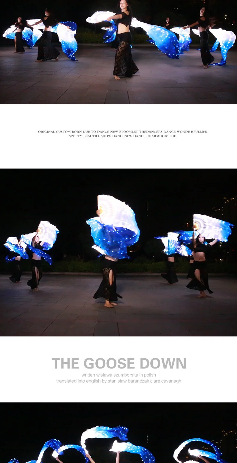 Светодиодный веер для танца живота Ruoru, веер из 100% шелка, блестящий карнавальный светодиодный веер, реквизит для выступлений, аксессуары для костюма