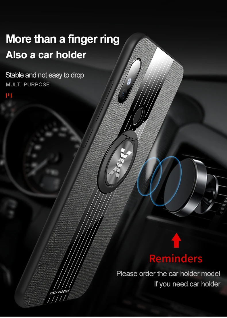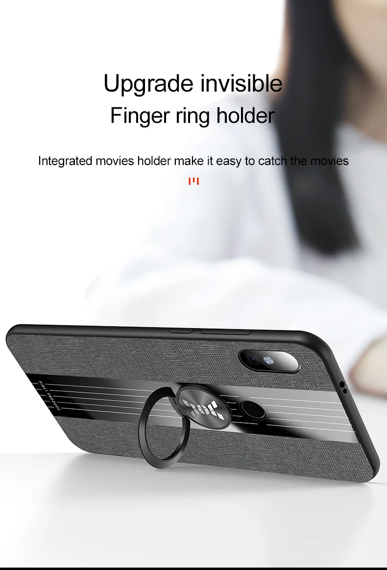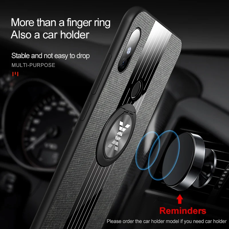 Чехол для Redmi 9 с кольцом-держателем, тканевая текстура, Жесткий ...