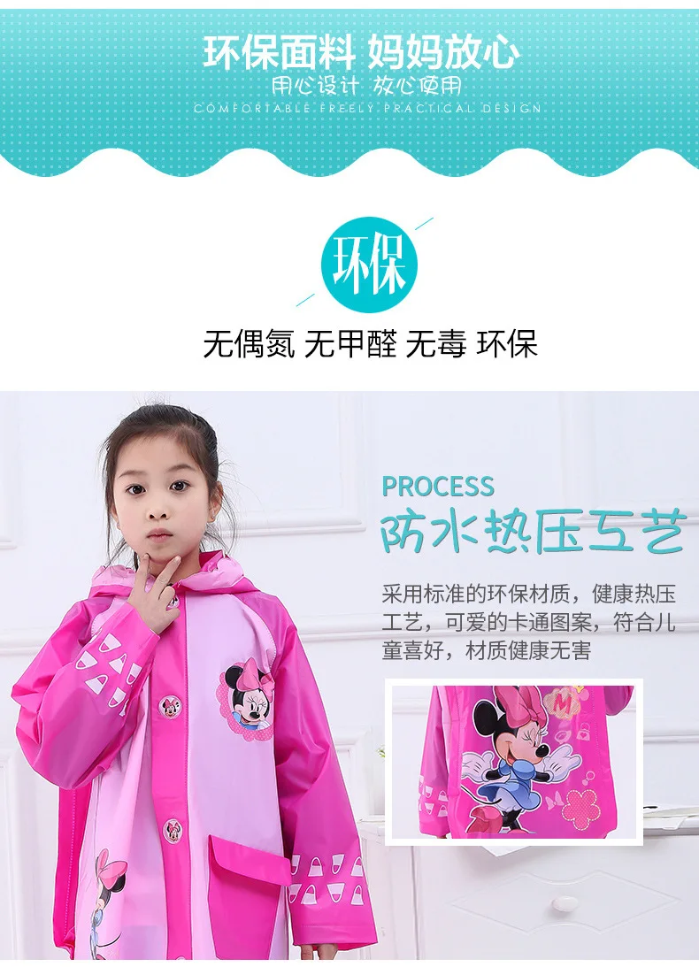 Детский непромокаемый дождевик для мальчиков и девочек, мультяшное пончо с изображением мультяшных персонажей, Минни, Микки, Школьный костюм