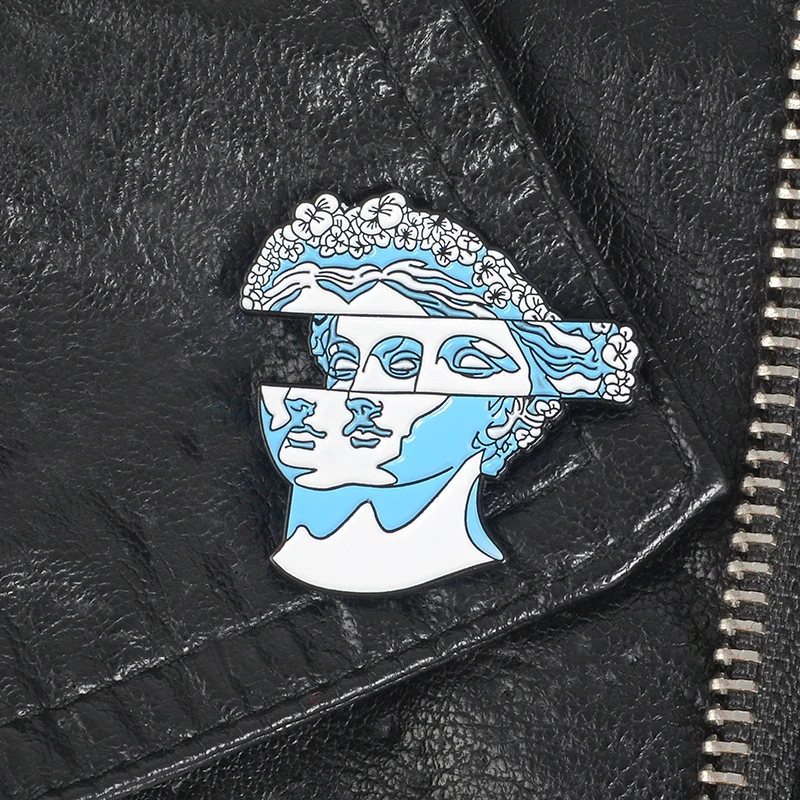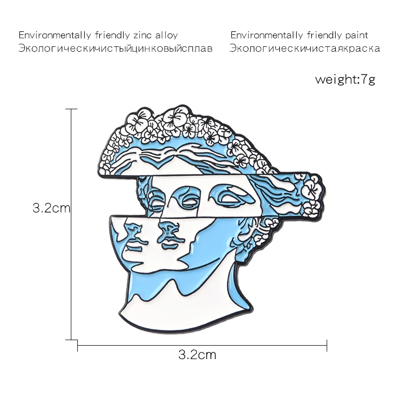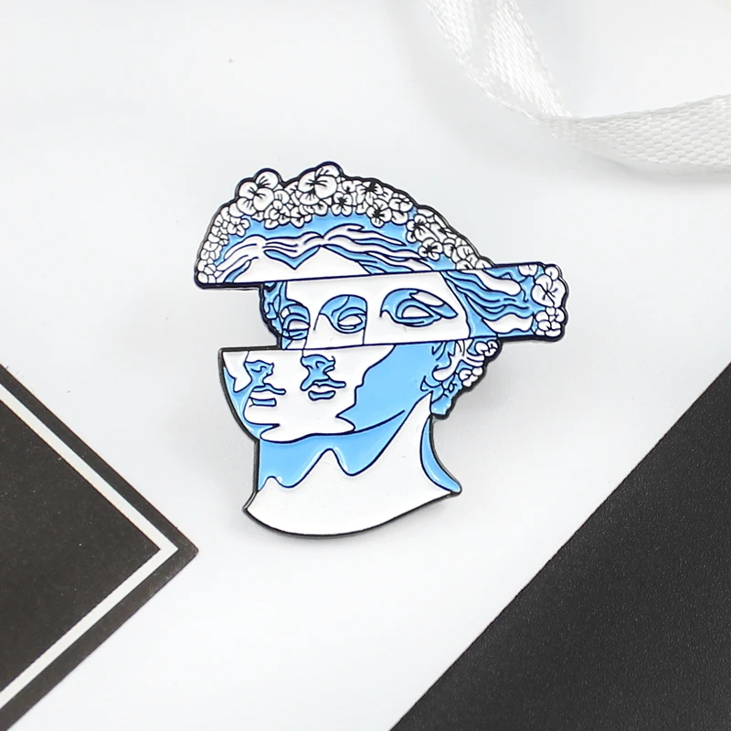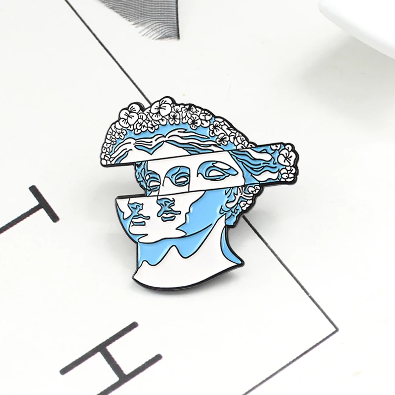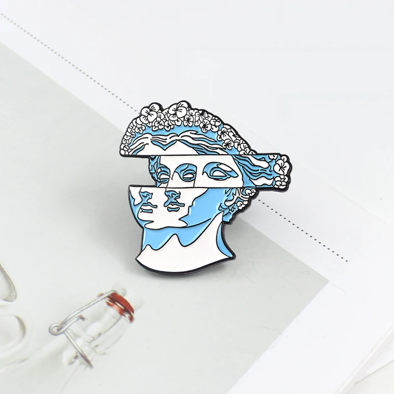 Модная синяя брошь в форме головы с изображением скульптуры, брошь с эмалью в абстрактном стиле с изображением скульптуры, подарки для друзей художников