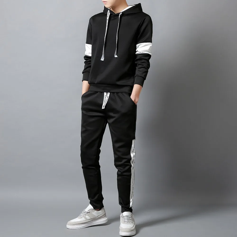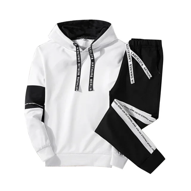 Повседневный Спортивный костюм, мужская мода 2019, спортивная одежда для бега, костюмы на весну и осень, комплект из двух предметов, толстовка с капюшоном и штаны, мужской спортивный костюм