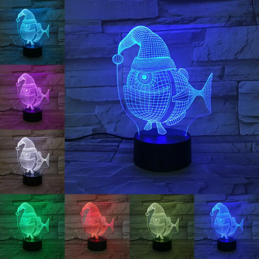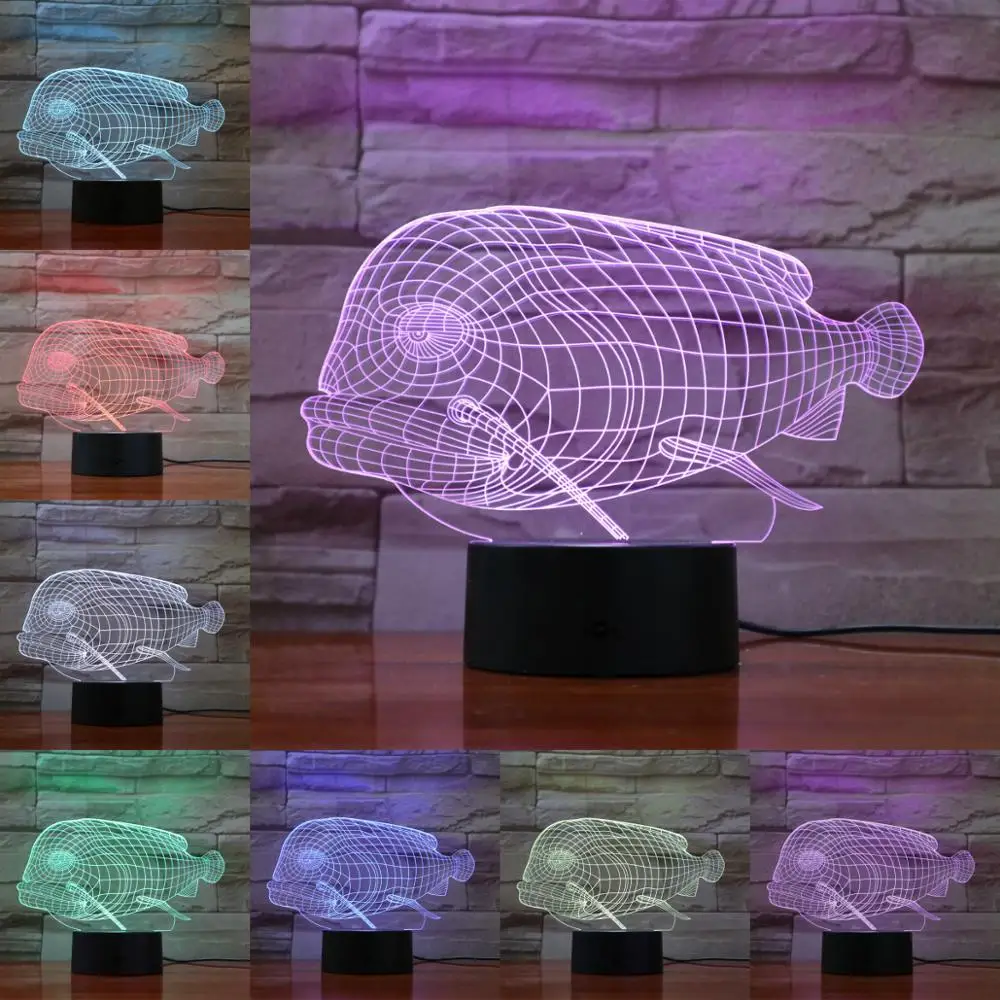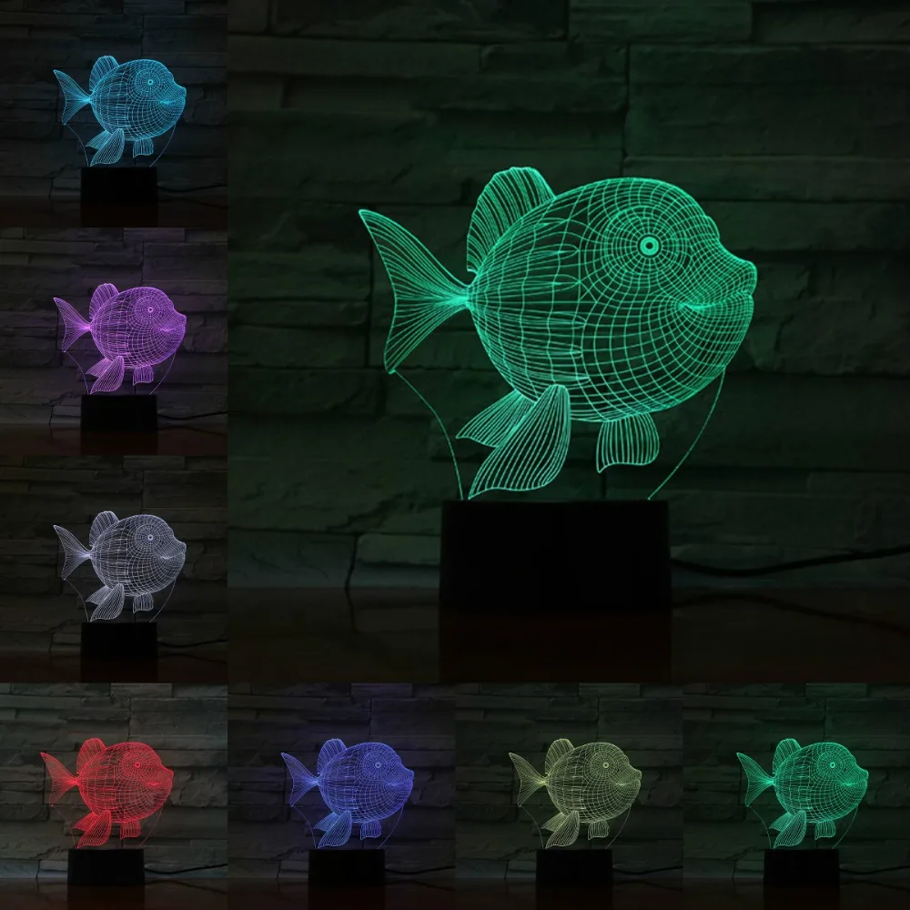 Новинка, освещение, 3D иллюзия, лампа в виде рыбы, многоцветный Сенсорный пульт, светодиодный USB ночник, стол, спальня, декорация, подарки, детские игрушки
