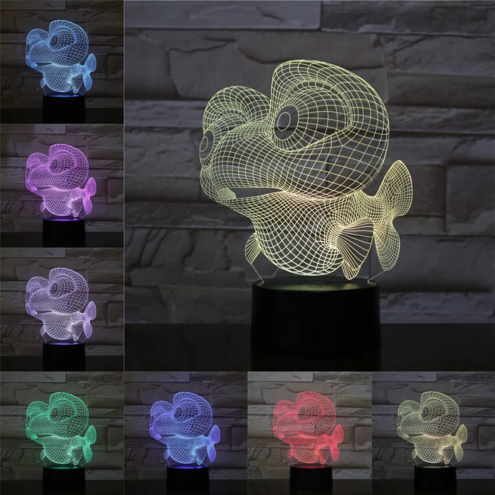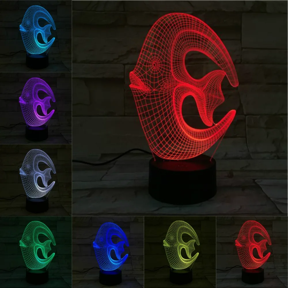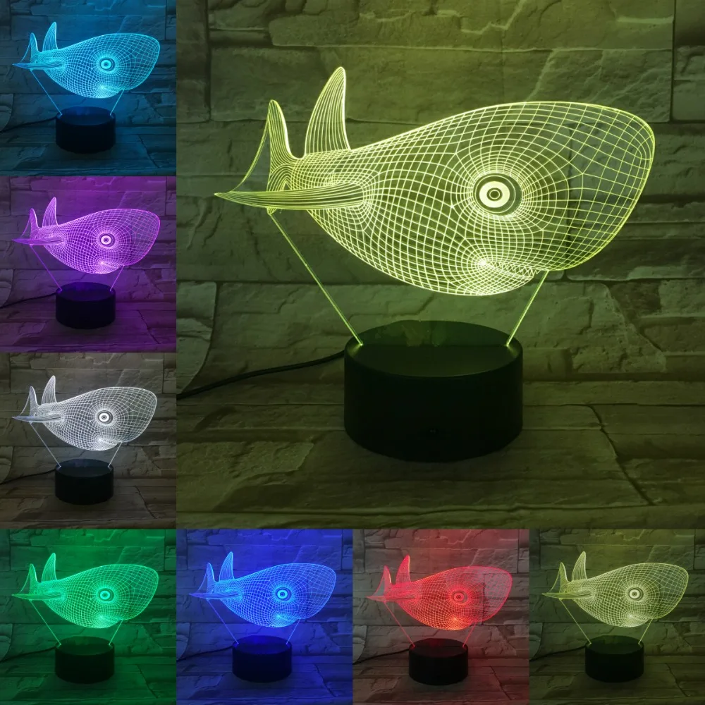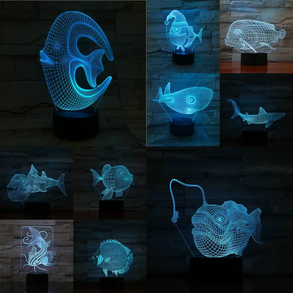 Новинка, освещение, 3D иллюзия, лампа в виде рыбы, многоцветный Сенсорный пульт, светодиодный USB ночник, стол, спальня, декорация, подарки, детские игрушки