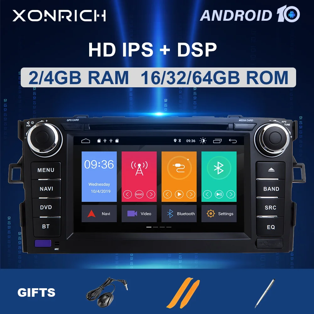 Автомобильный DVD-плеер IPS 2 din Android 10 для TOYOTA AURIS Altis COROLLA 2012 2013 GPS Радио Навигация экран мультимедийный аудио