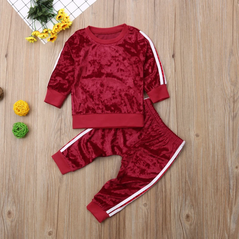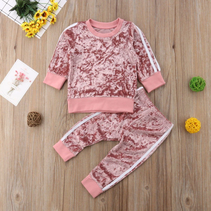 Осень-зима 2020, бархатные комплекты одежды для маленьких девочек, ...