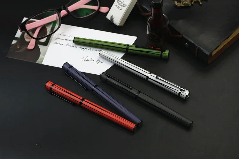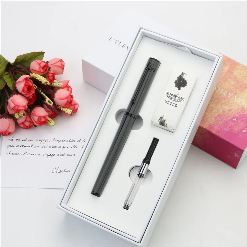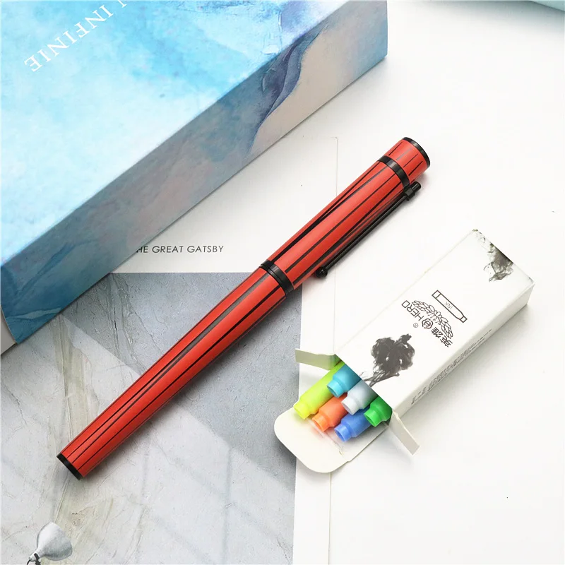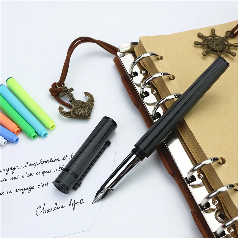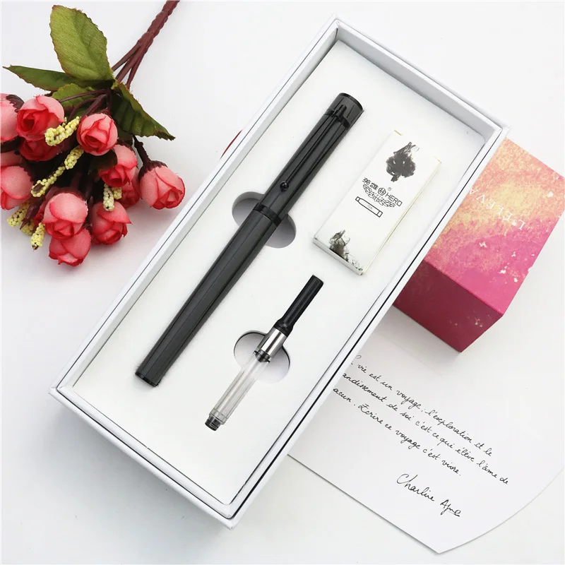 Графитовая черная перьевая ручка, набор роскошных чернильных ручек с иридиевым наконечником, содержит картриджи 6 цветов, серия Бесконечных Исследований
