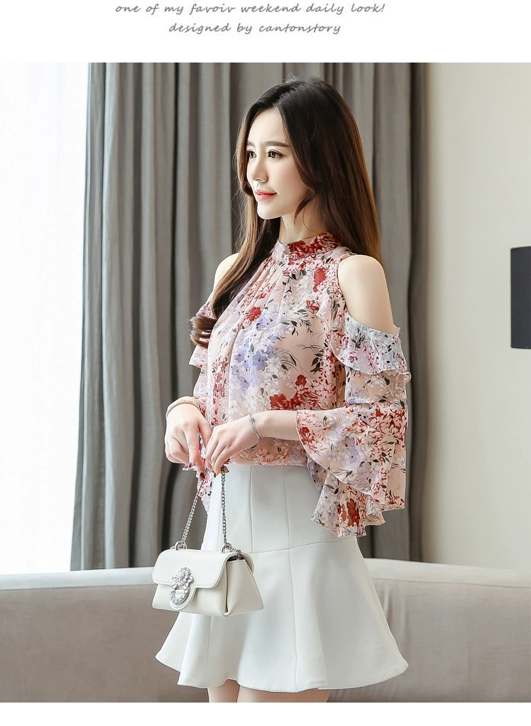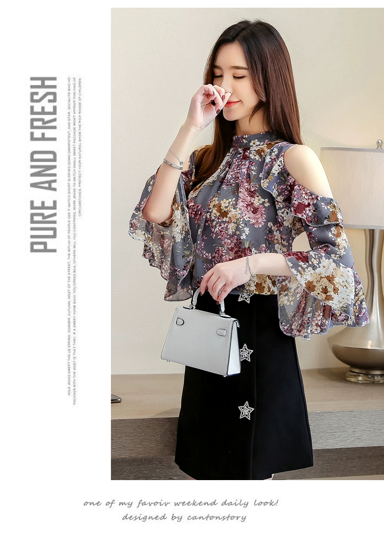 2022 женские блузки и топы с коротким рукавом-бабочкой и круглым вырезом, женская одежда, элегантные женские Топы с длинным рукавом и цветочным принтом 5388 50