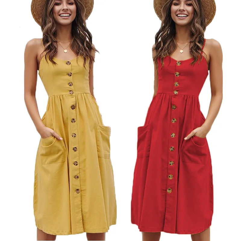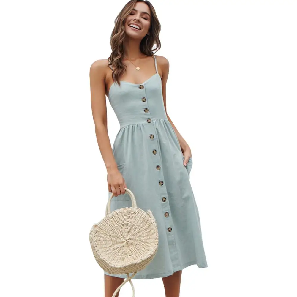Повседневная женская обувь Открытое платье без рукавов для женщин летнее платье 2021 Сексуальное Женское Платье-миди Винтаж Vestidos размера плюс с низким вырезом на спине многоярусные платья на бретелях с кнопкой
