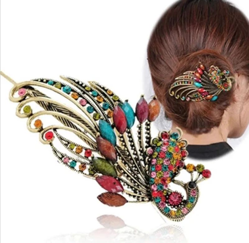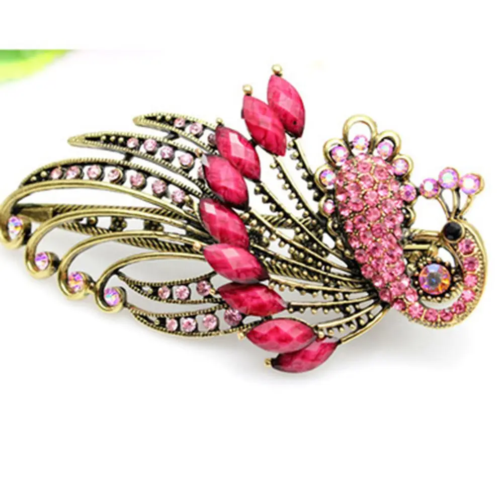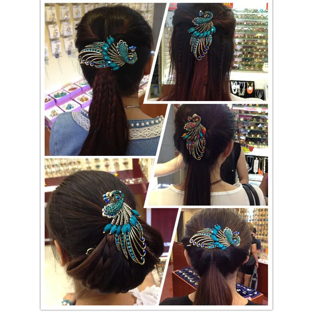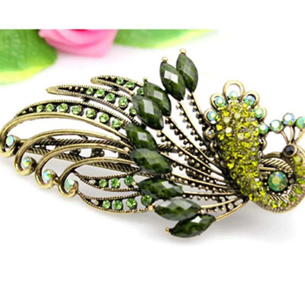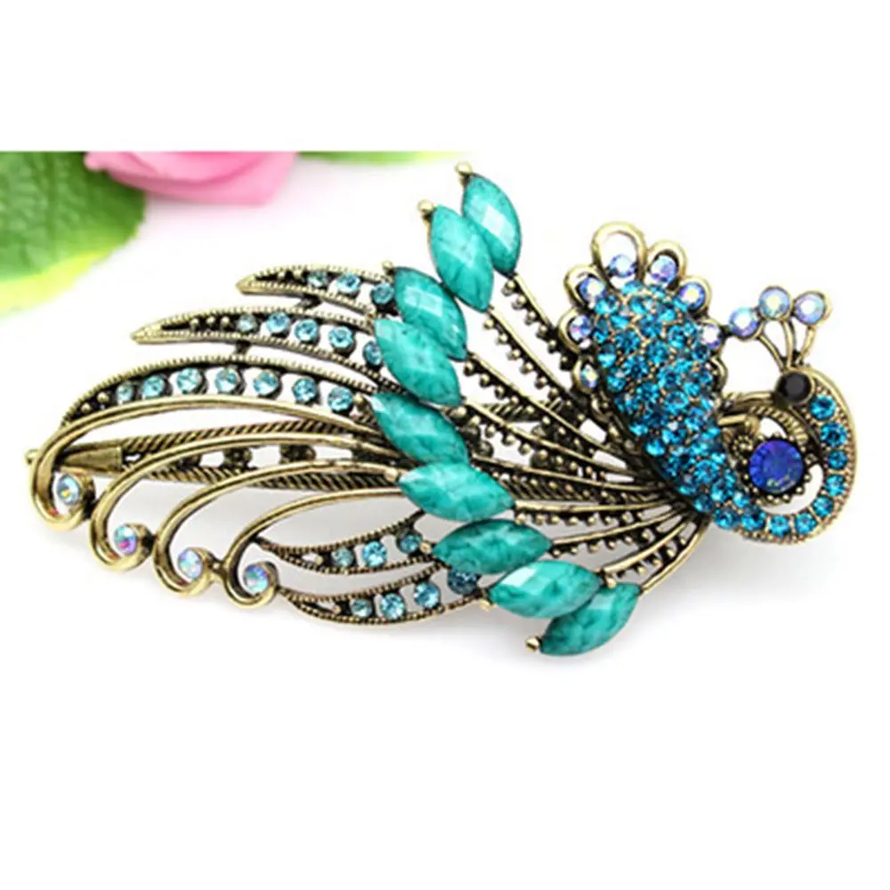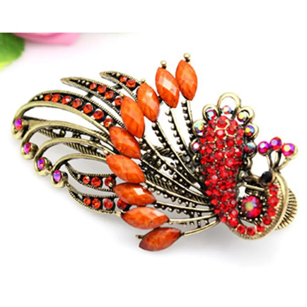 Заколка для волос с павлином женская, Винтажная заколка-пряжка с кристаллами, большой аксессуар для волос, 1 шт.