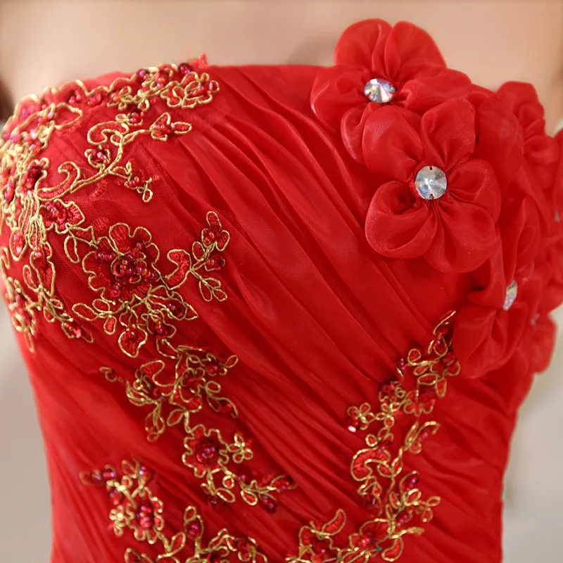 Женское свадебное платье без бретелек, розовое, красное, белое платье с аппликацией в стиле ретро