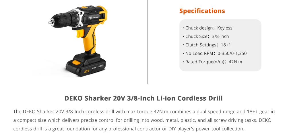 Шуруповерт DEKO аккумуляторный, 20 в, со светодиодной подсветкой