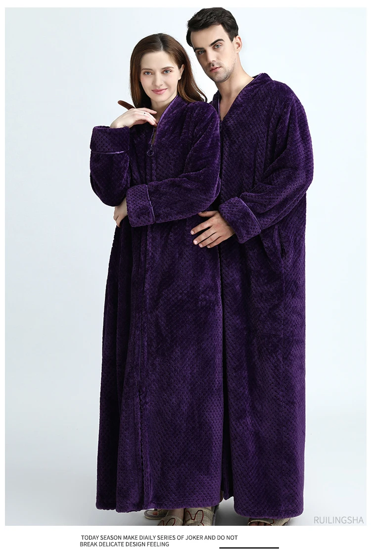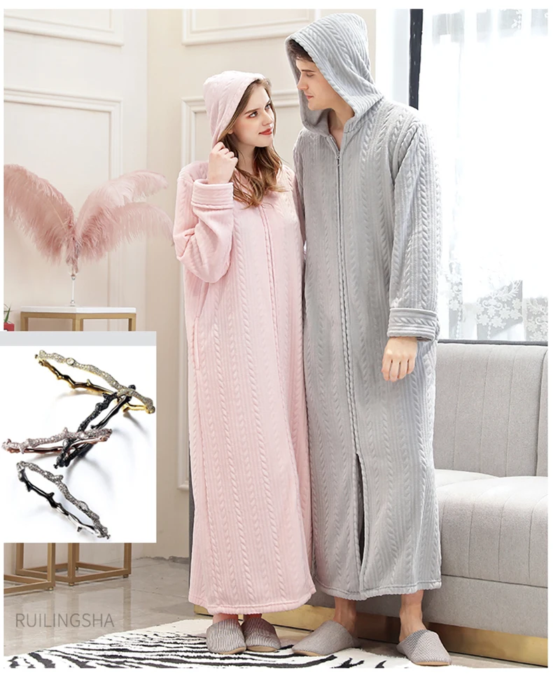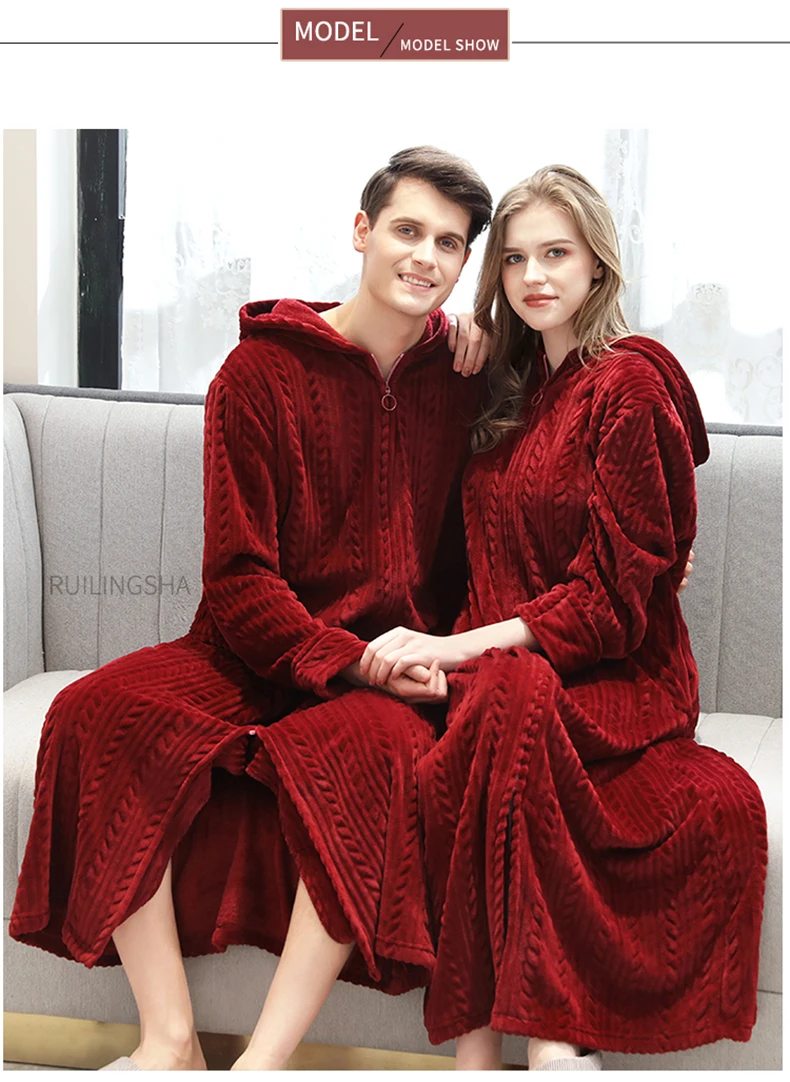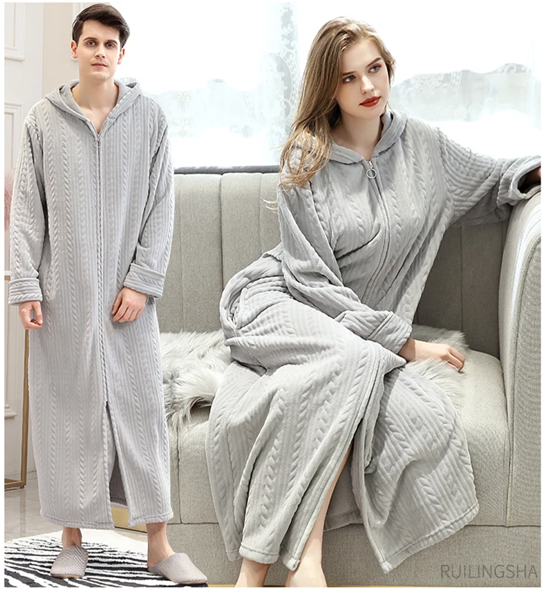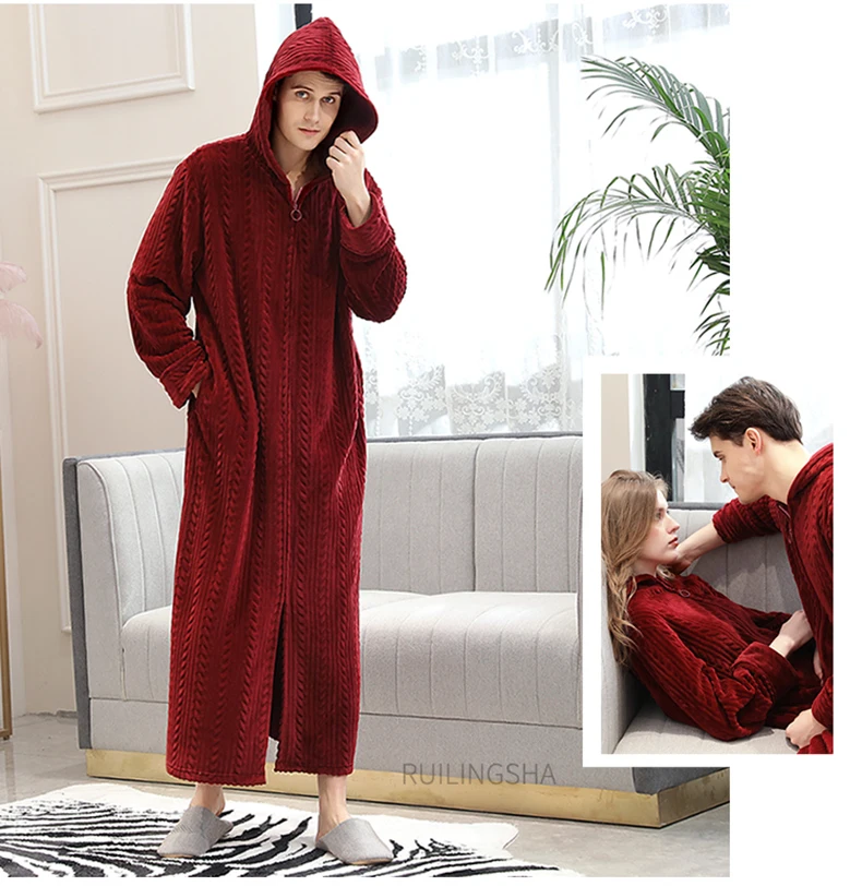 40-110 кг размера плюс для мужчин зимний длинный теплый банный халат из кораллового флиса, одежда уютный фланелевый банный халат с капюшоном ночной халат для женщин, одежда для сна