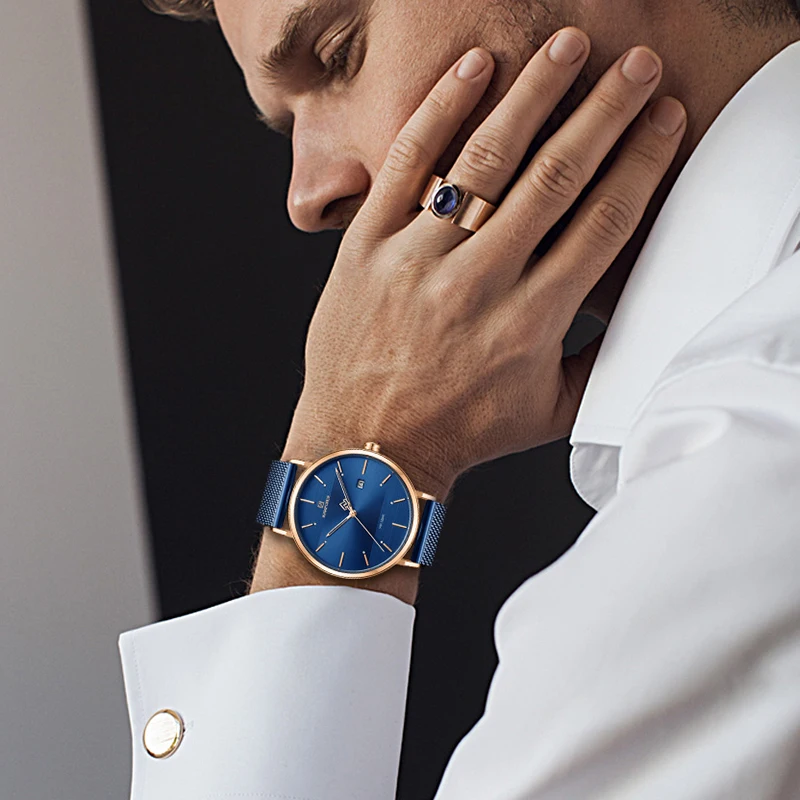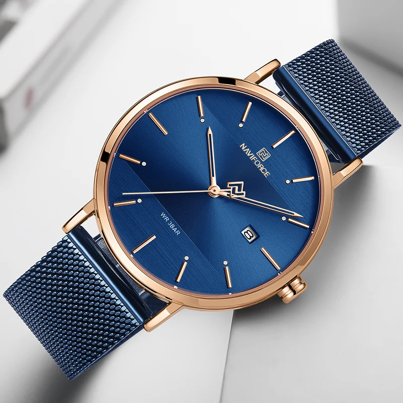 Часы наручные NAVIFORCE Мужские кварцевые, брендовые простые деловые водонепроницаемые из нержавеющей стали