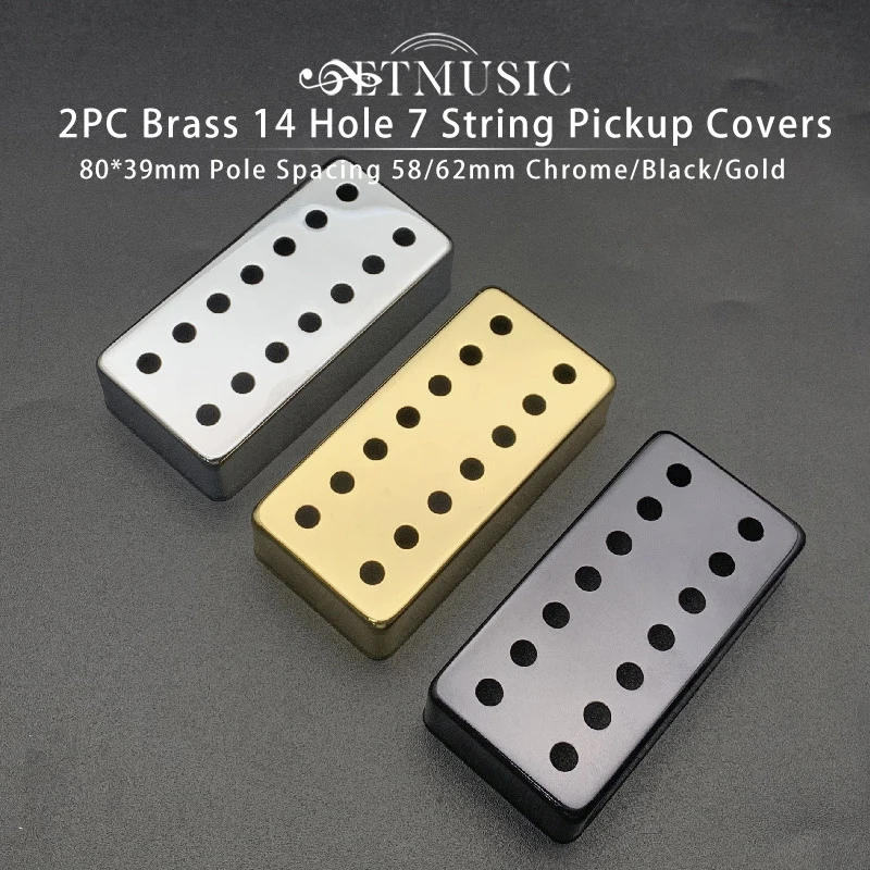Крышка звукоснимателя для электрогитары, латунь, 7 струн, 14 отверстий, 80*39 мм, Черное золото, хром, 5862 мм, 2 шт.