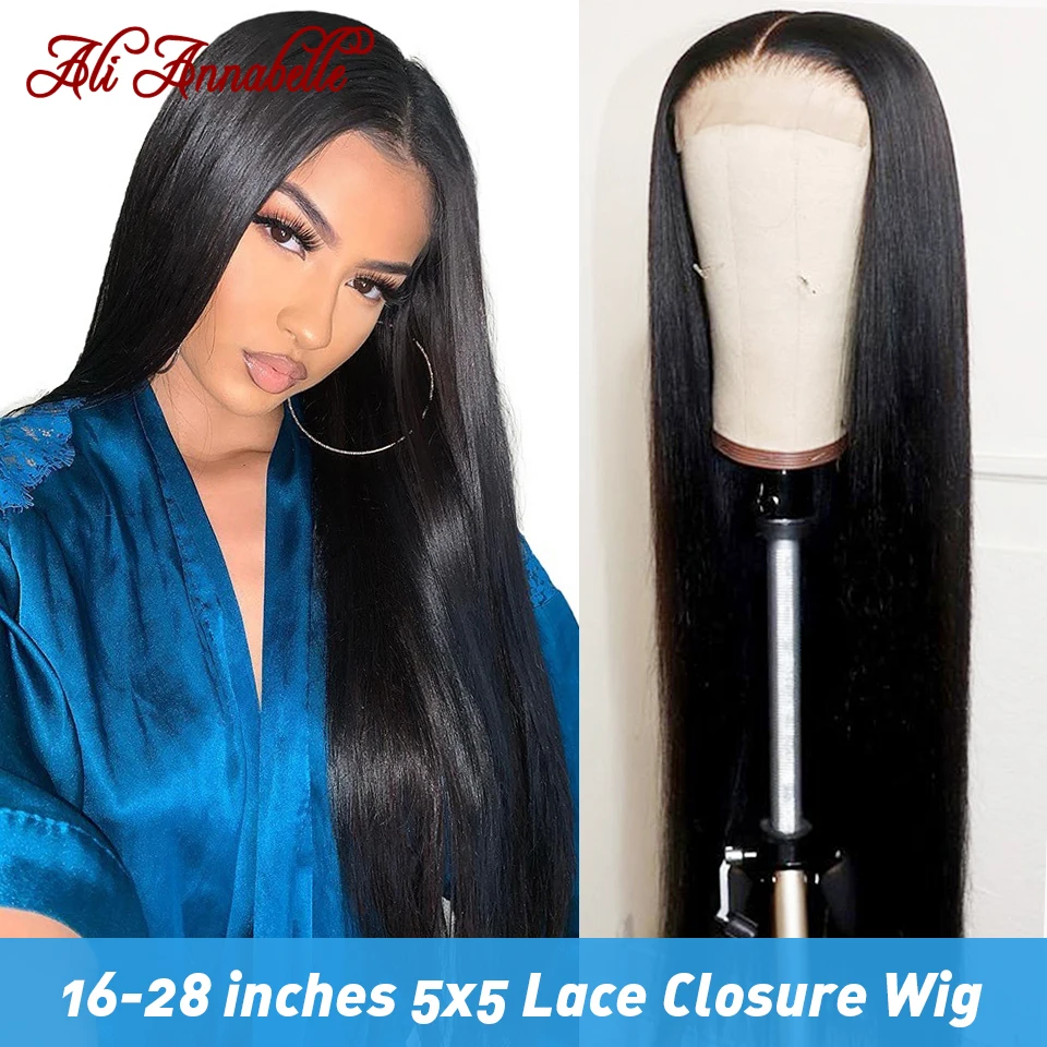 Парики на сетке 5x5, бразильские прямые парики из человеческих волос, предварительно выщипанные парики 13x1, 28 дюймов, Ali Annabelle, невидимые парики на сетке HD