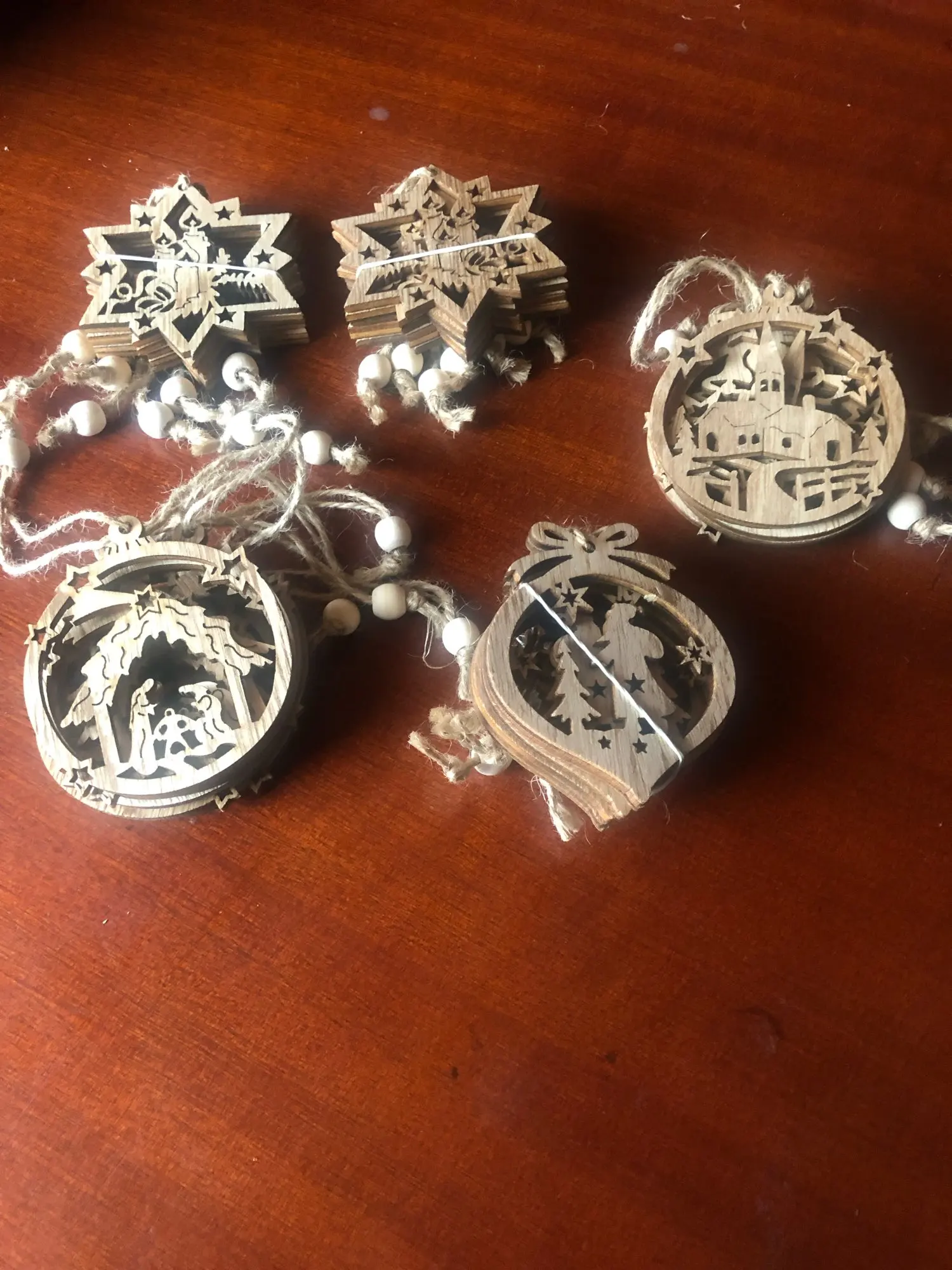 Красивые деревянные вешалки, но с заказом кажется, что они с тремя разными в коробке, сидя, но вы получите только подвески.