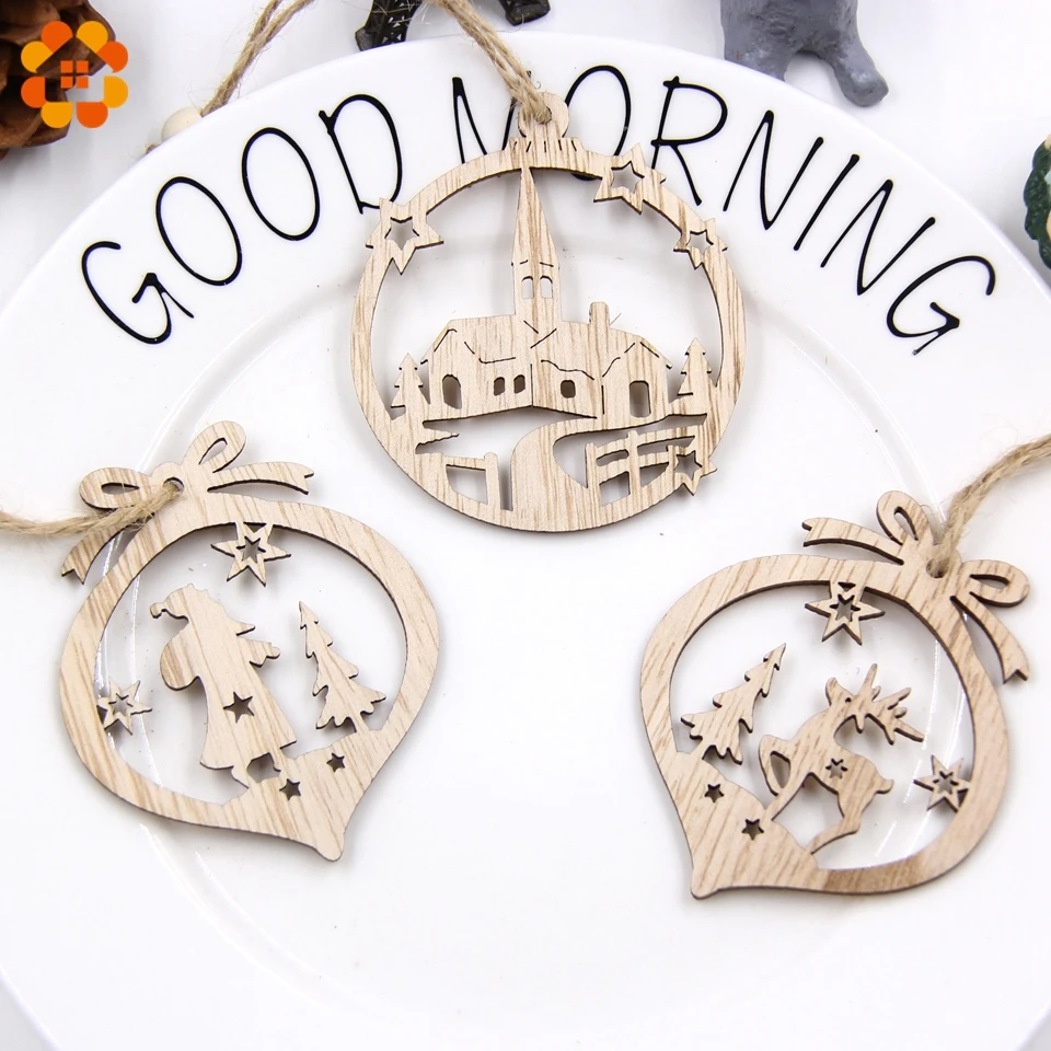 6 шт.лот, винтажные полые рождественские подарочные деревянные подвесные украшения, деревянные украшения для новогодней елки, детские игрушки, подарки