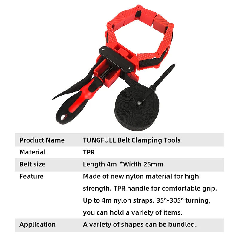 Многофункциональный ремень с зажимом, полигональный угловой зажим из чистого нейлона, 4 м, с быстрой регулировкой, для деревообработки