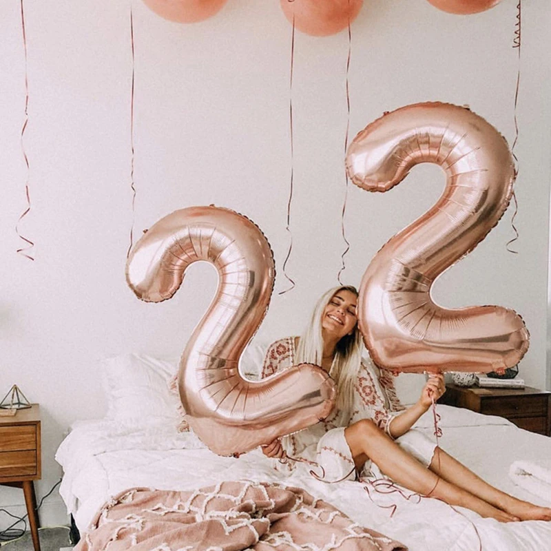 32-дюймовые цифры-шары из алюминиевой фольги, розовые золотые цифры...
