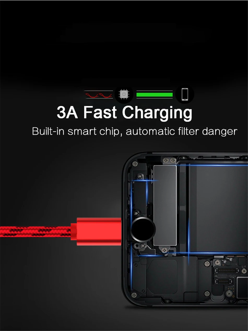 3A Micro USB Type C кабель, USB C кабель для быстрой зарядки, мобильный телефон, кабель для быстрой зарядки 3,0, провод для передачи данных для Samsung Xiaomi Redmi