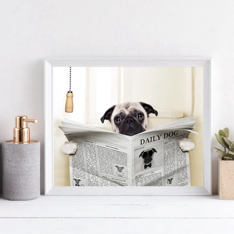 Pug Dog Sitting onToilet Art Painting Picture Wall Decor