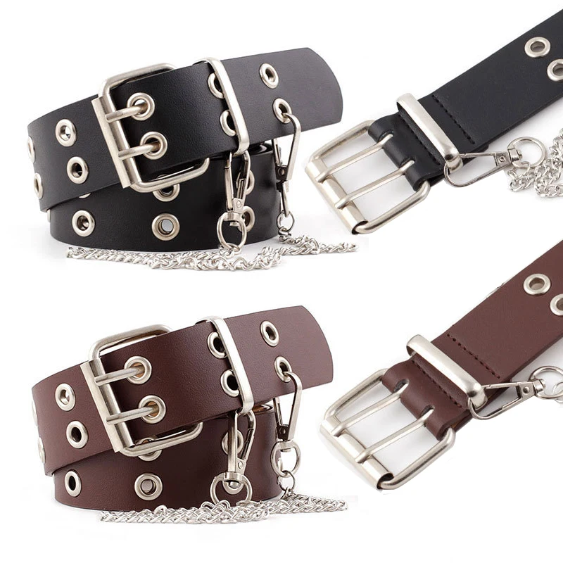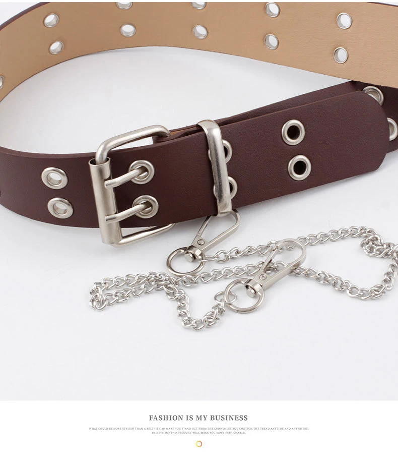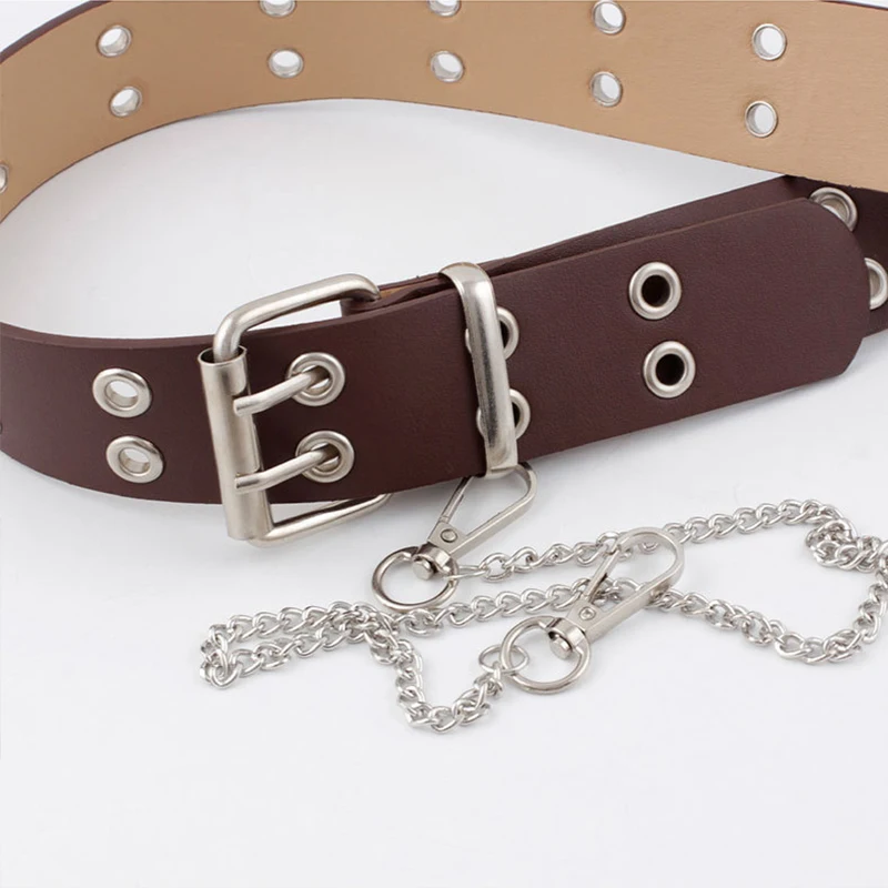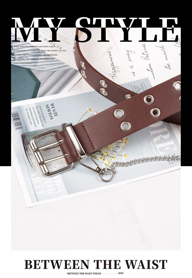 Ремень женский из искусственной кожи с металлической пряжкой, с двойными Люверсами