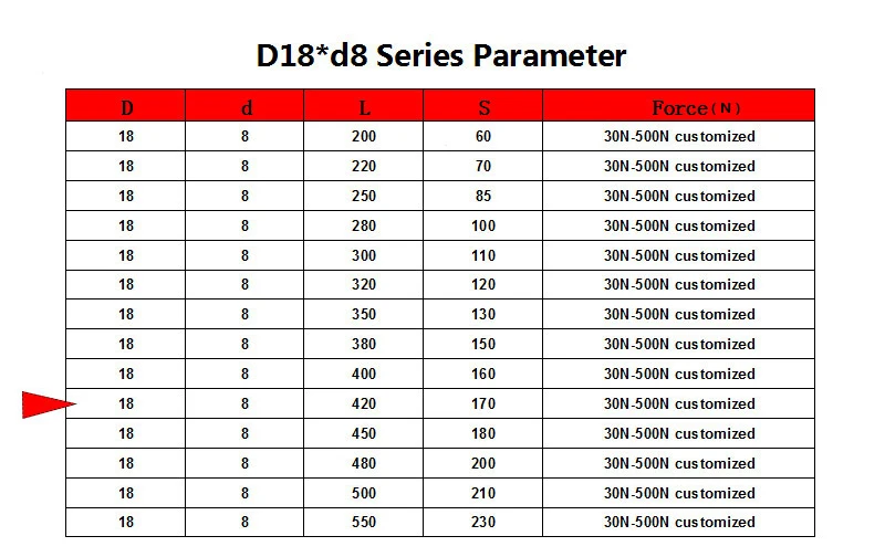 Пружина для газового шкафа, пружина 18*8, 180 мм, отверстие 50-450 ...