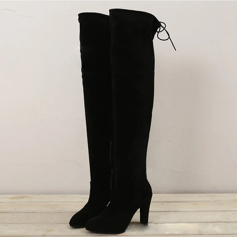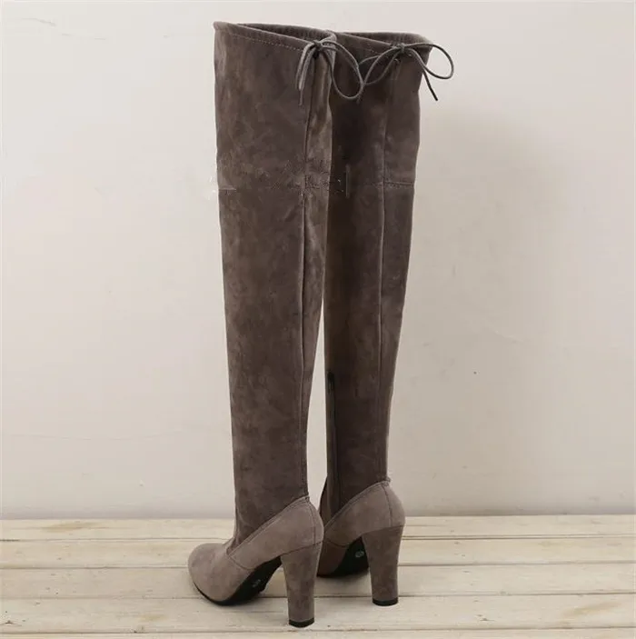 Женские сапоги выше колена, из флока, на очень высоком каблуке, большой размер 43, Осень-зима 2019