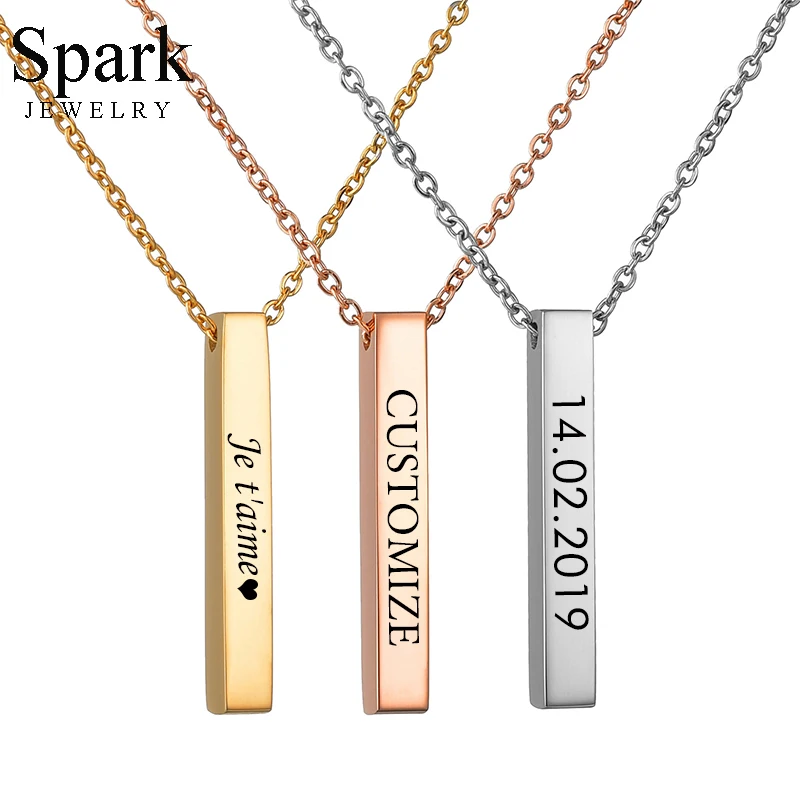 Spark ожерелья из нержавеющей стали, персонализированное имя, дата, бар, 3 цвета, персонализированная табличка, вертикальные бирки для женщин, подарок на день рождения, воротник