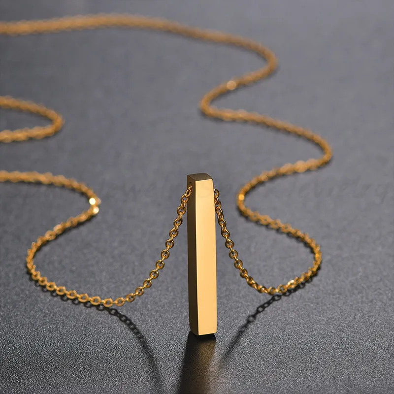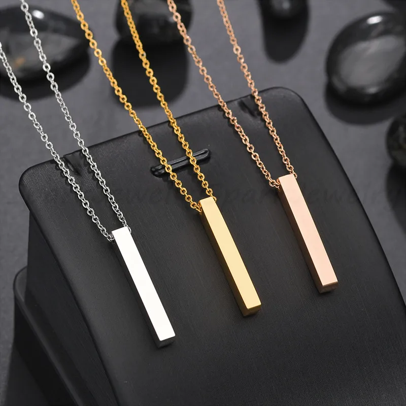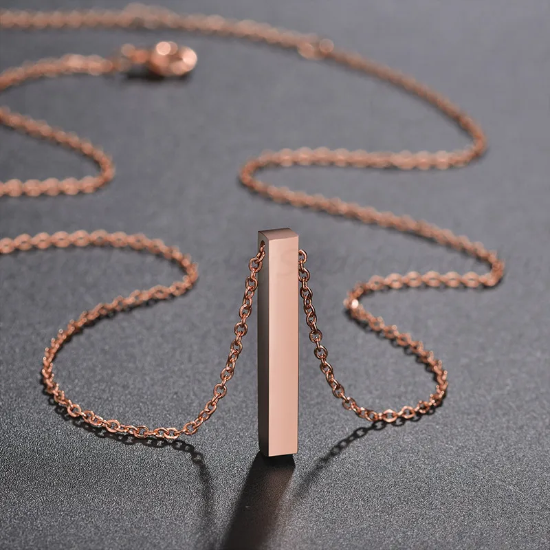 Feature/ShapeCustom engraving name date ractangle necklace, Vertical bar necklace