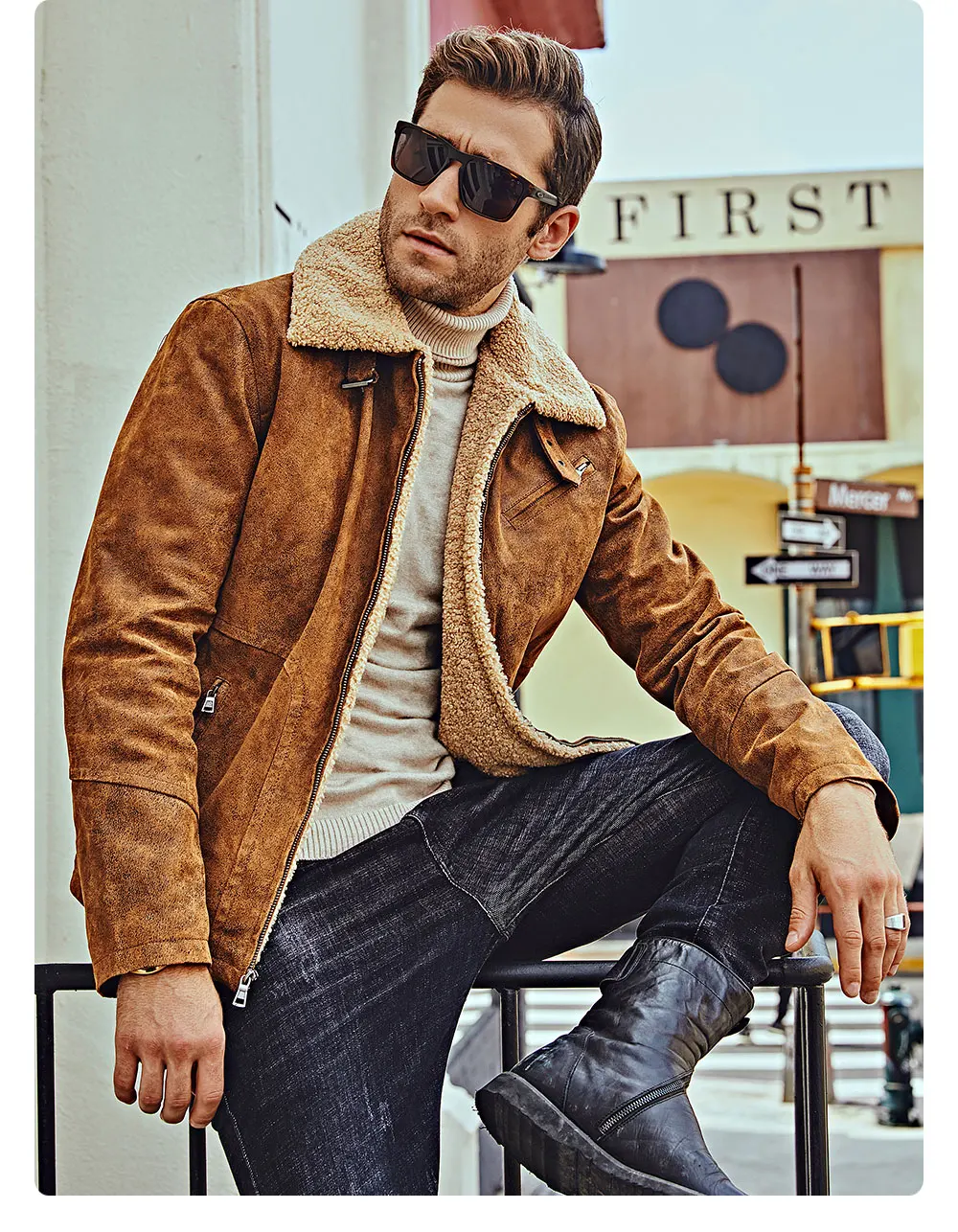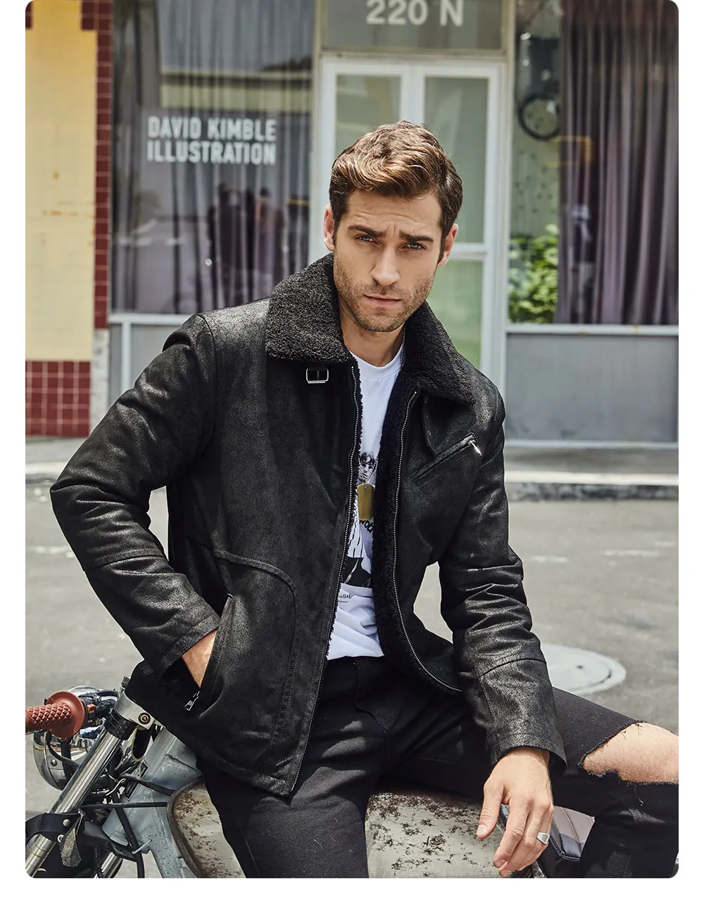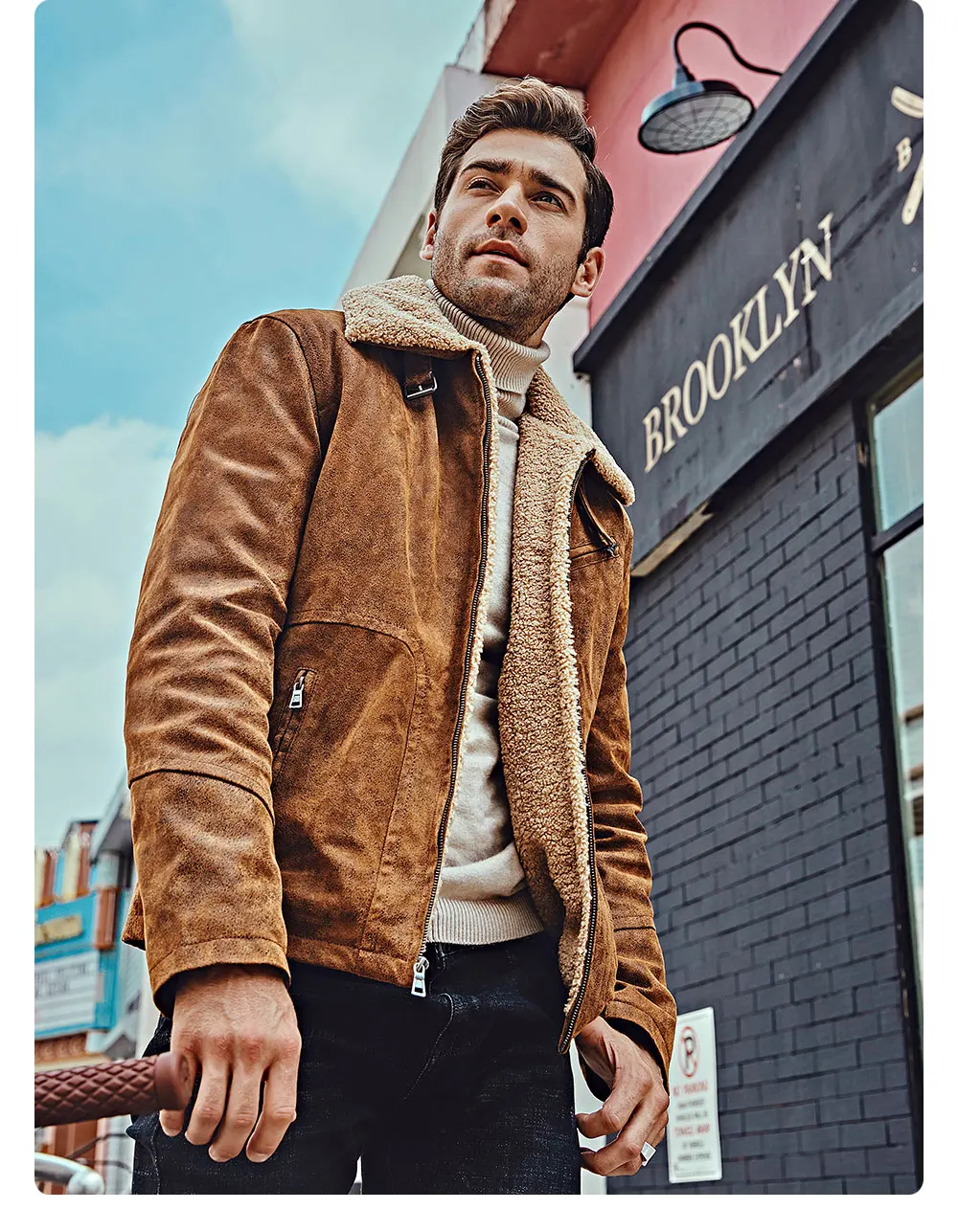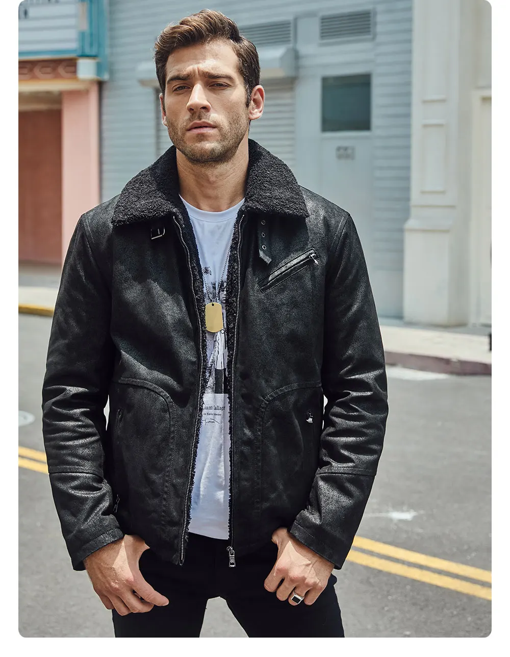 Куртка-бомбер мужская из натуральной свиной шкуры с искусственной овчиной