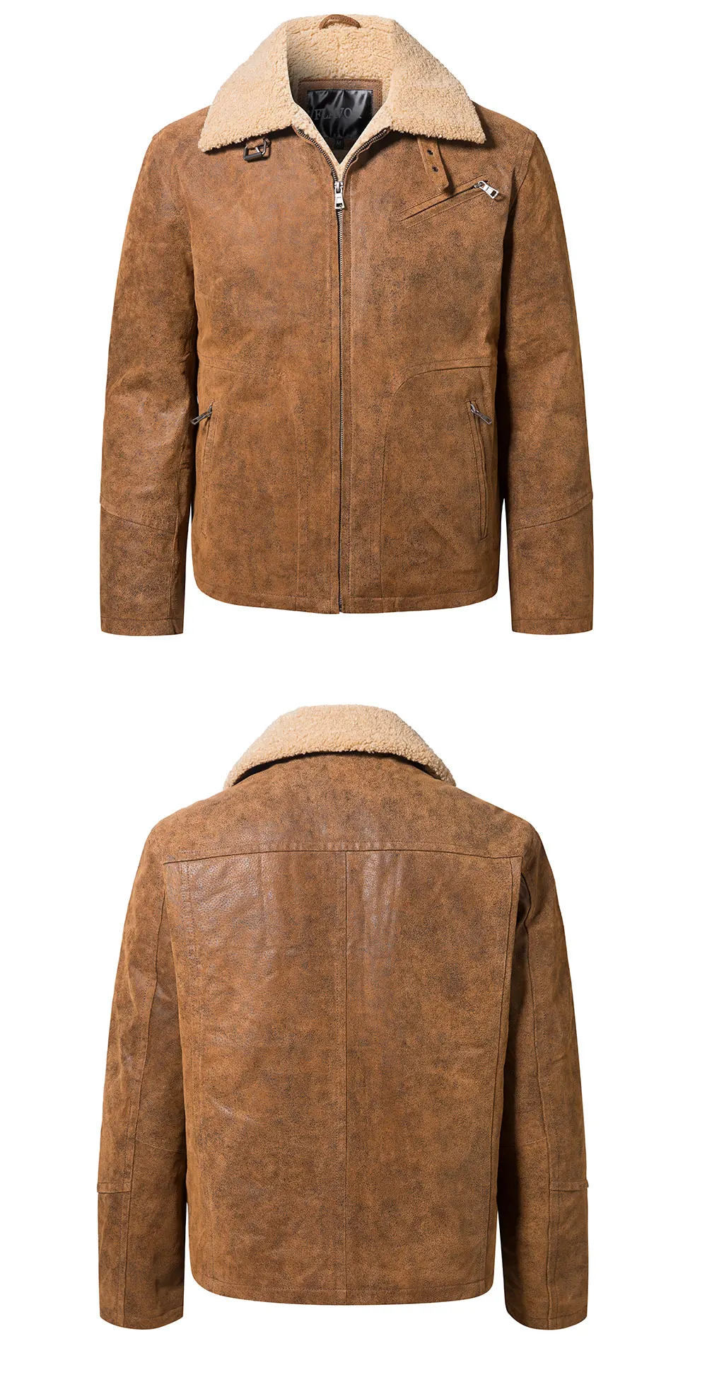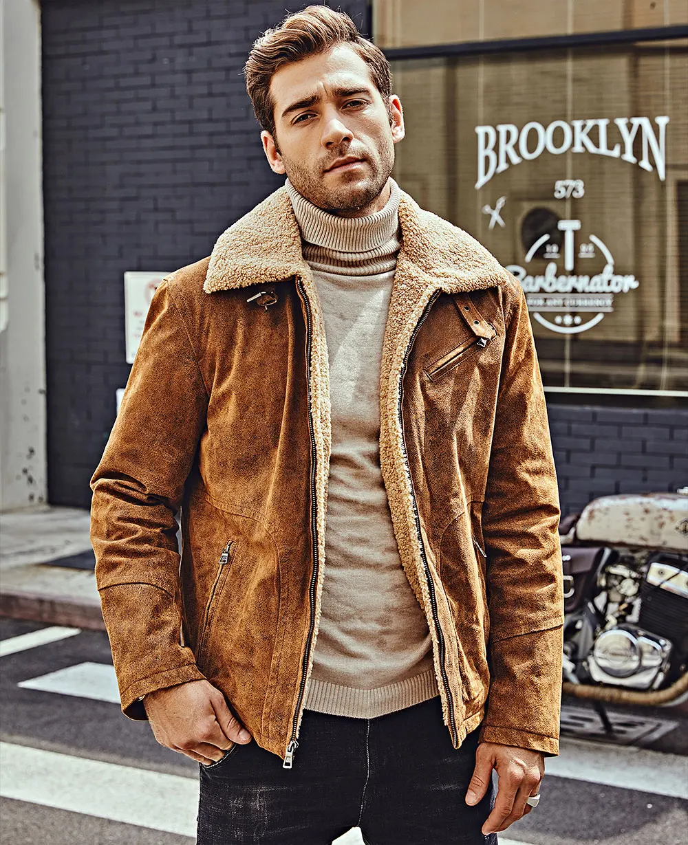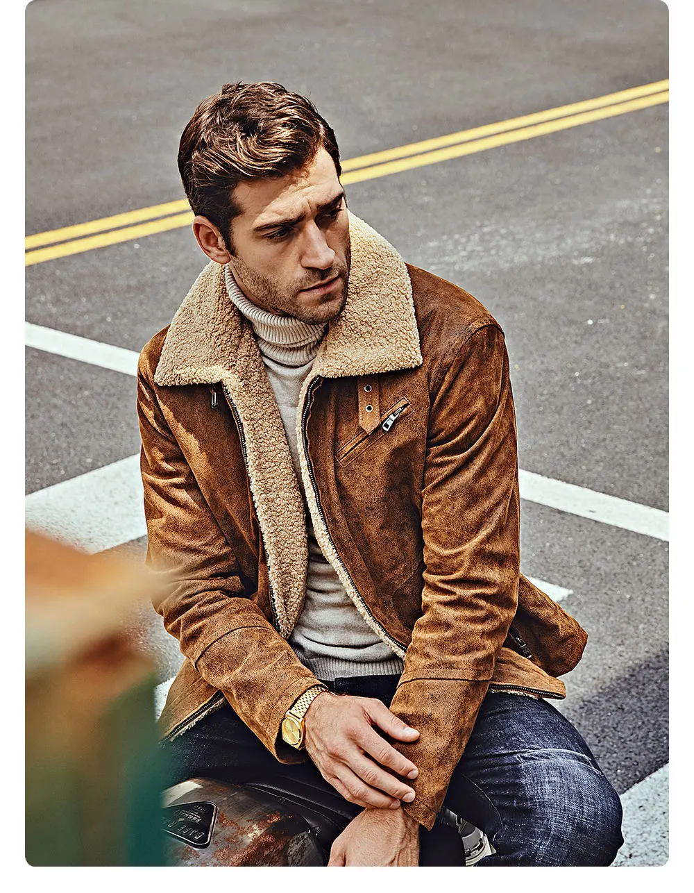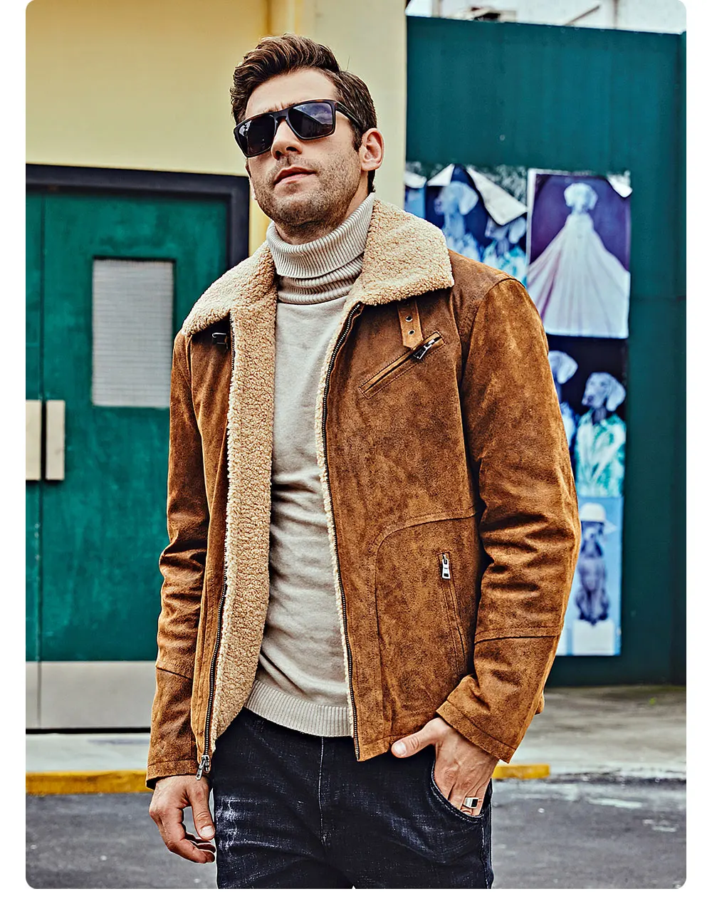 Куртка-бомбер мужская из натуральной свиной шкуры с искусственной овчиной