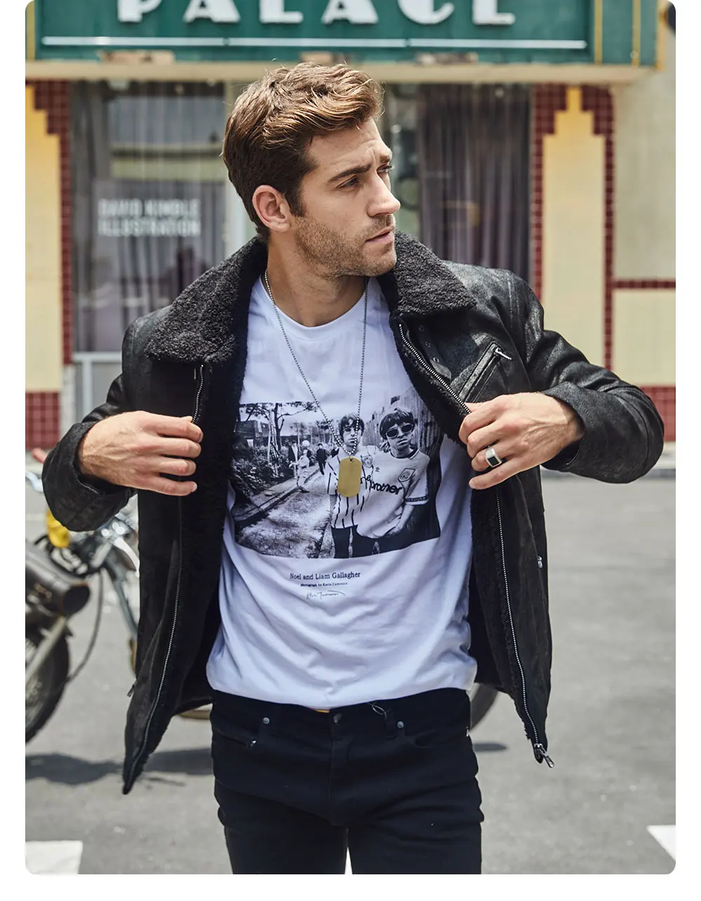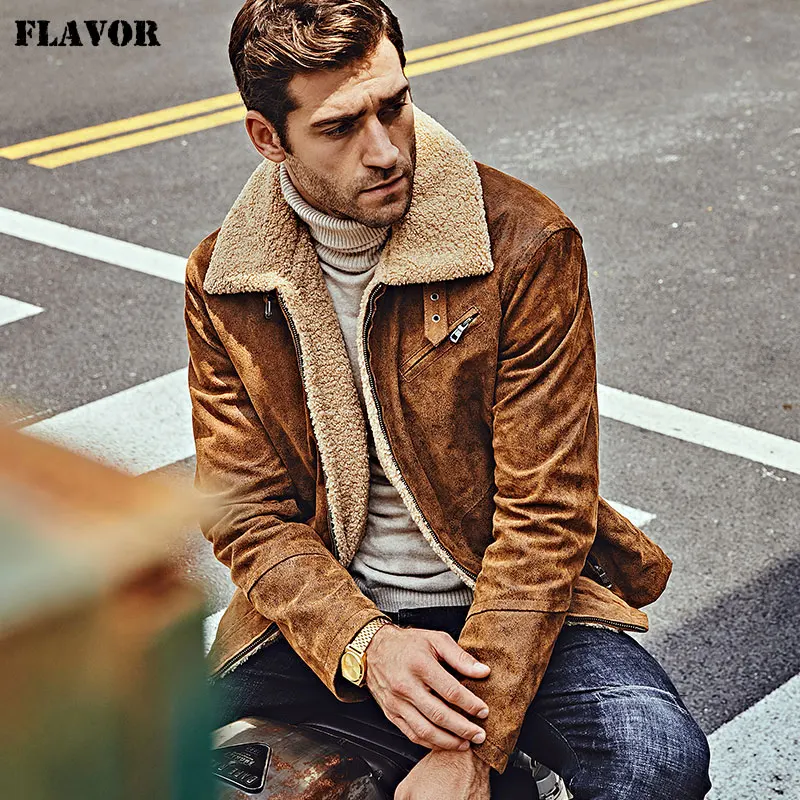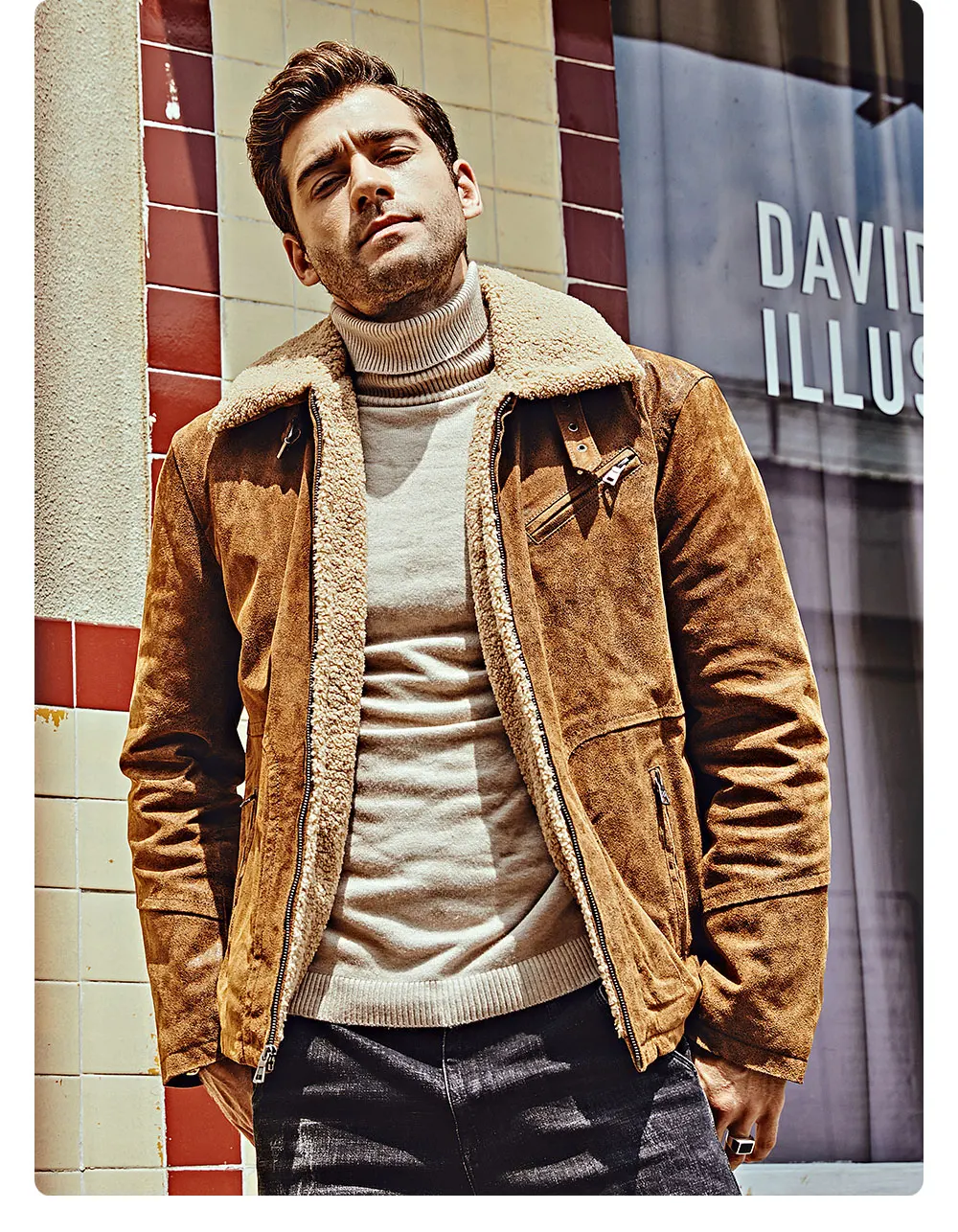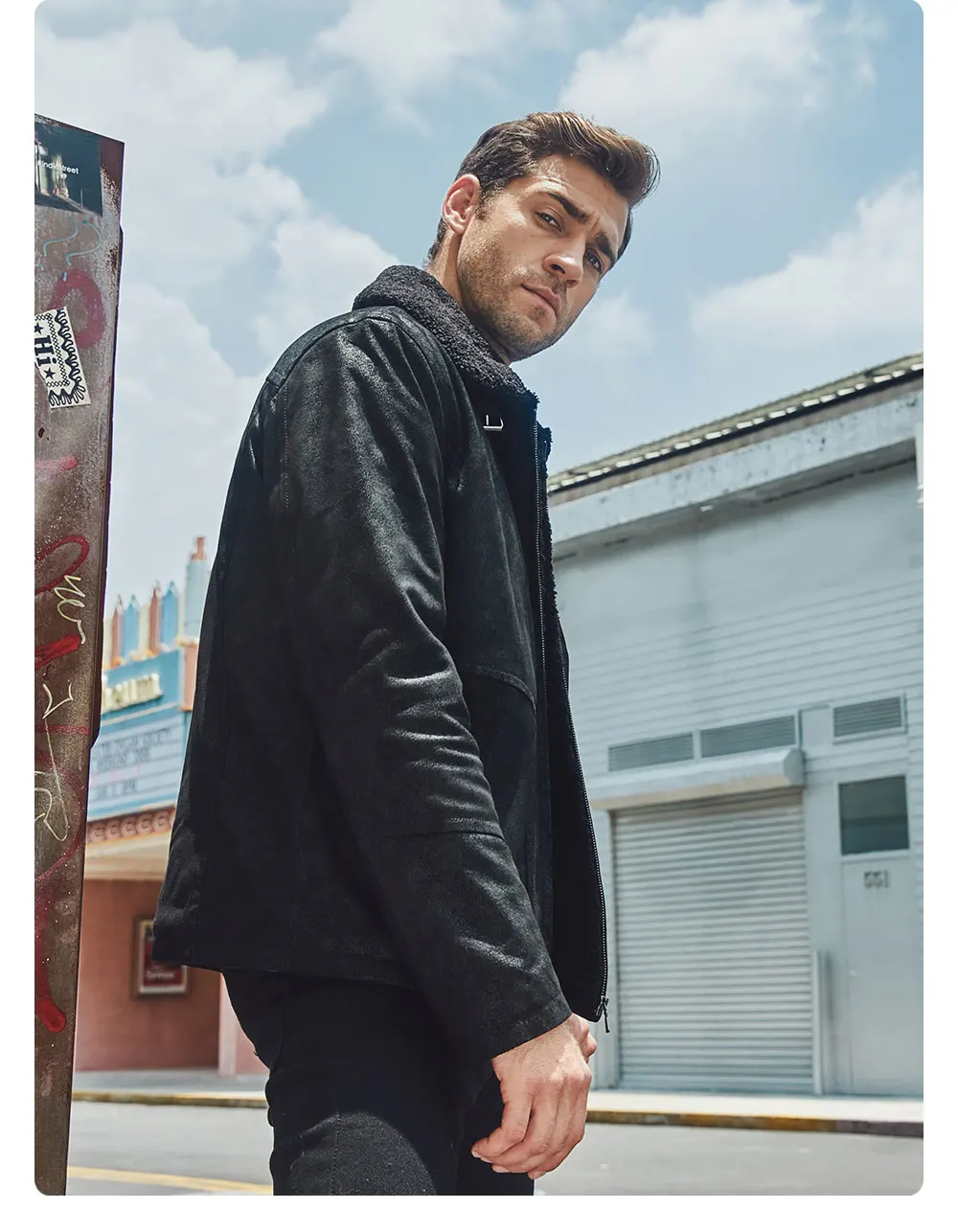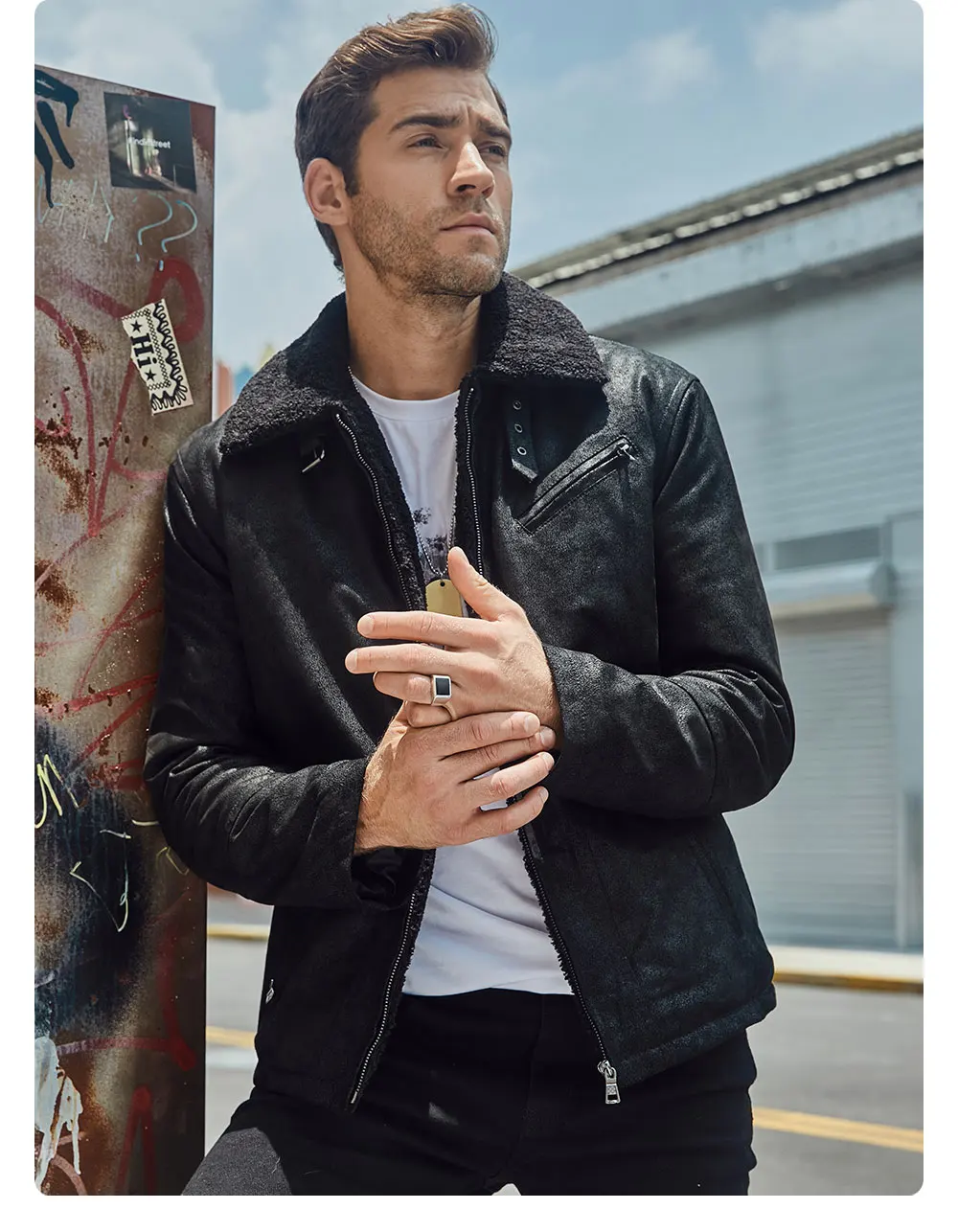 Куртка-бомбер мужская из натуральной свиной шкуры с искусственной овчиной