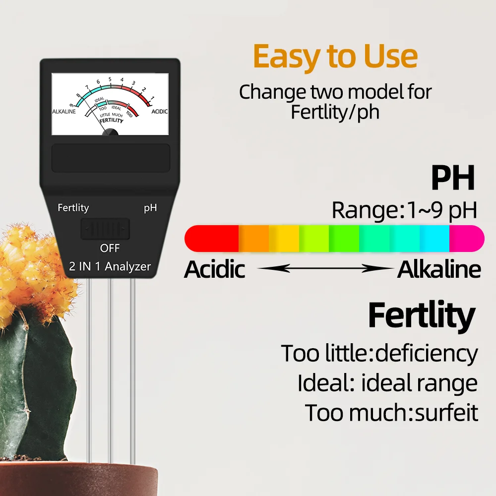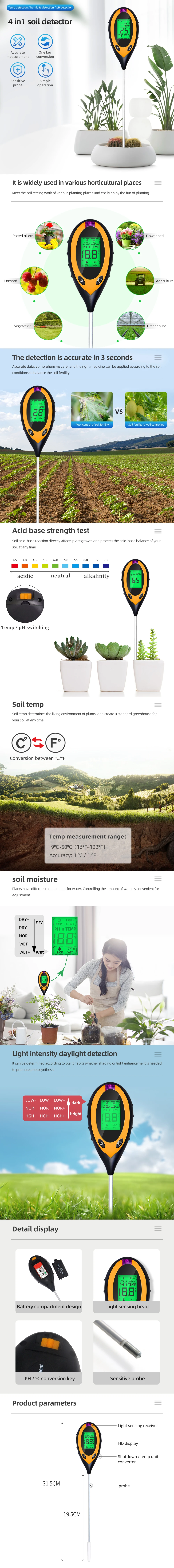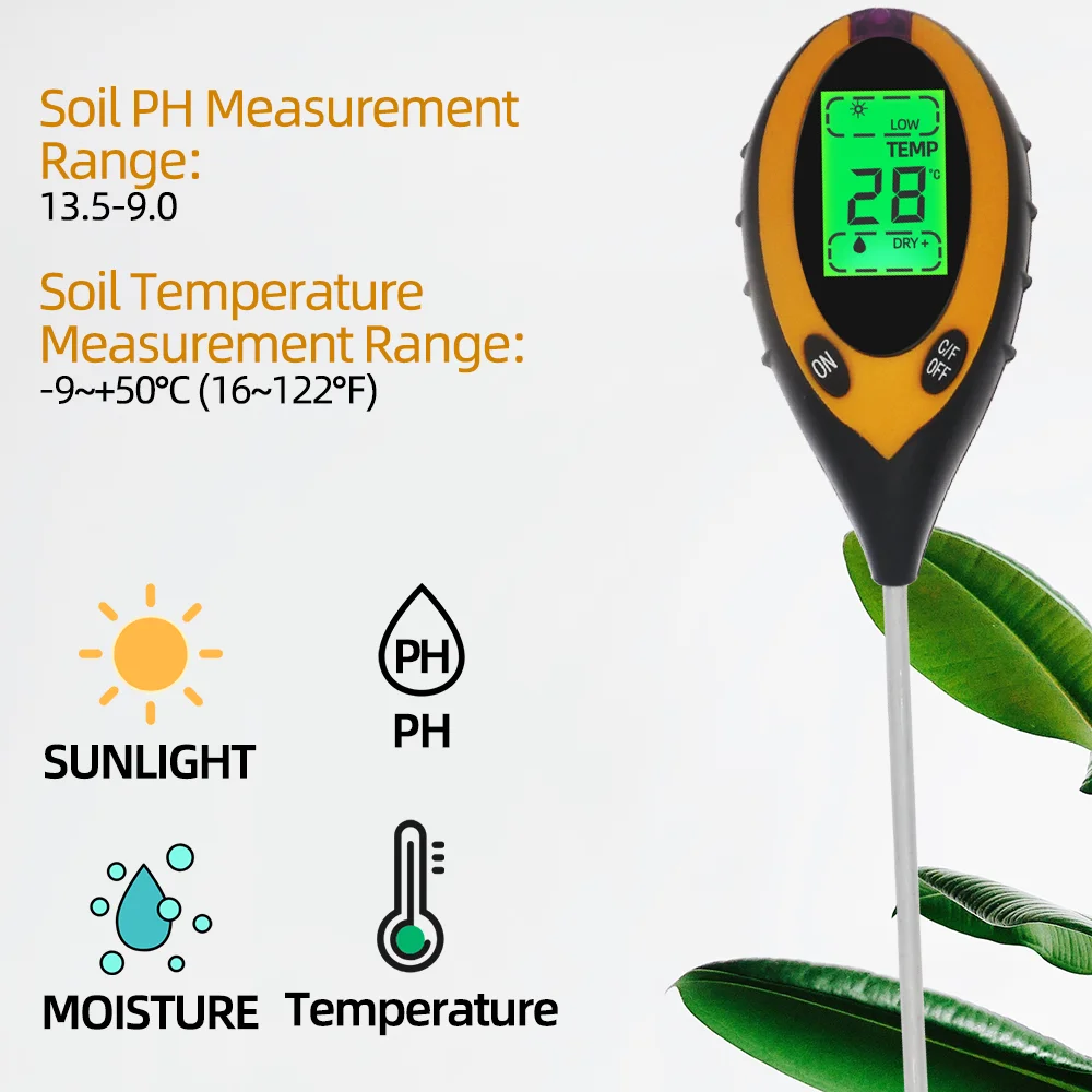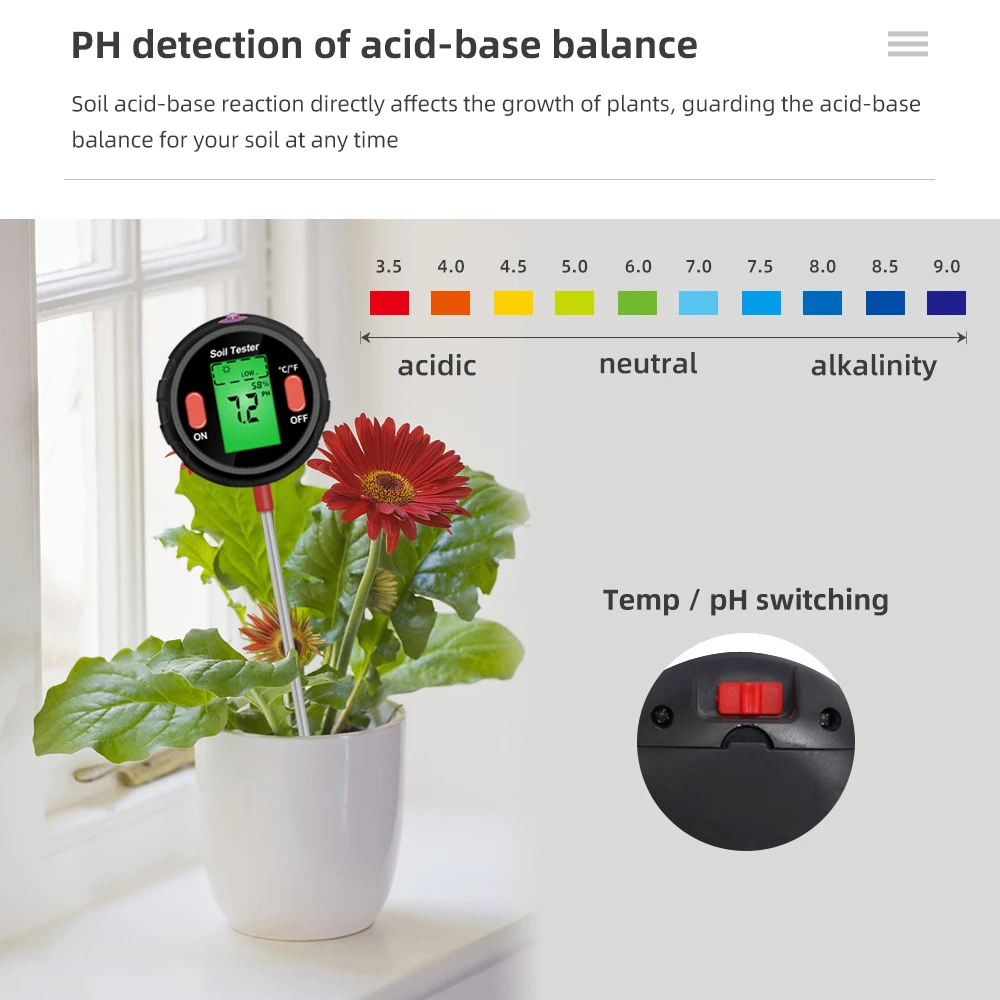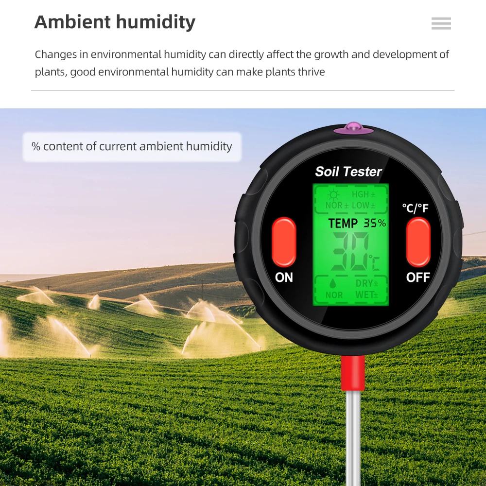 PH-метр почвы 2345 в 1, тестер почвы, измеритель влажности, температуры, интенсивности солнечного света, анализатор кислотности, садовый инструмент