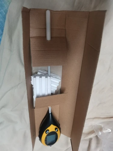 Коробка пришла мятая, но прибор цел, работает, проверила на домашнем цветке, в огороде зима, покупала для огорода