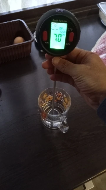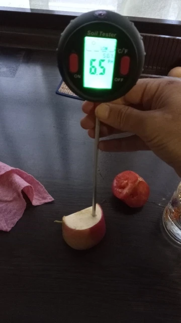 Работает отлично. Даже в цветочном горшке показывает результат проверки. Жалко, что батарейки в комплекте не было.