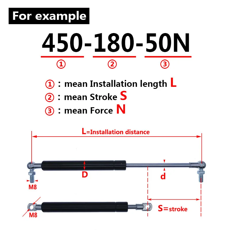 2 шт. 18*8 пружинный стержень с газовой пружиной 130 мм Ход 50-350 ...