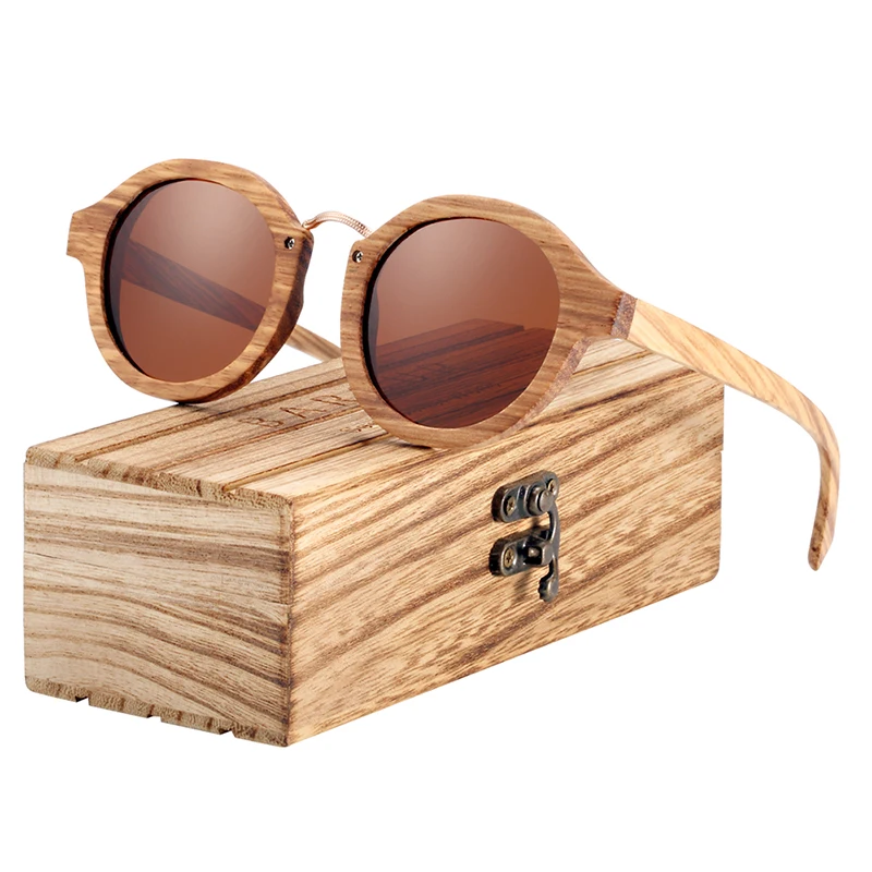 BARCUR, Зебра, деревянные солнцезащитные очки, ручная работа, кругл...