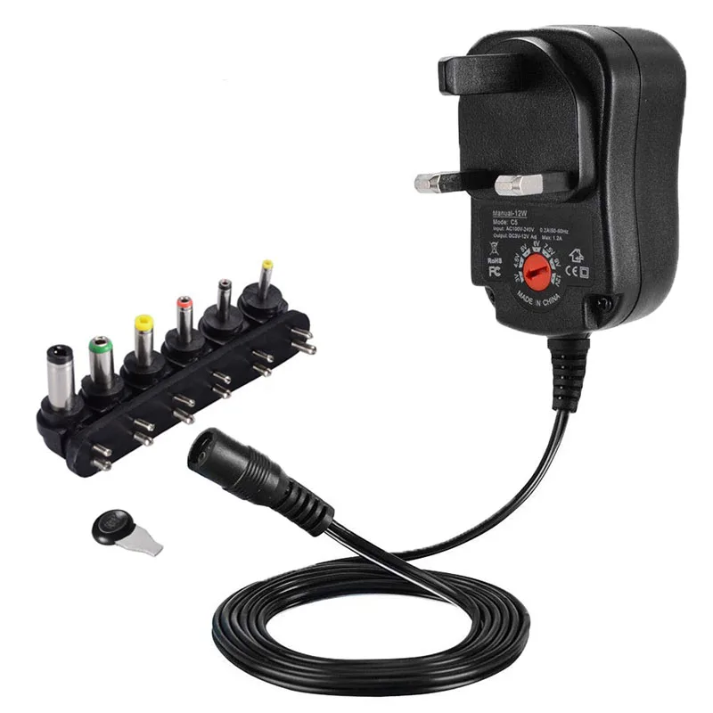 1 шт. 3 в 4,5 в 5 в 6 в 7,5 в 9 в 12 в 1 а Регулируемый адаптер питания вилка стандарта Великобритании зарядное устройство переменногопостоянного тока Универсальный 12 в ма импульсный источник питания 12 Вт