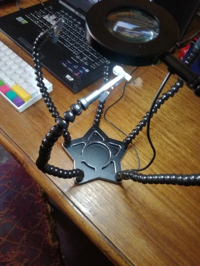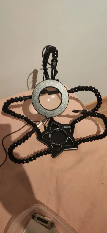 основание очень лёгкое, лупа легко перевешивает. надо как-то утяжелять. сами руки с заусенцами и сделаны довольно топорно, за 2 тыщи можно и поаккуратнее обрабатывать пластик. освещение очень хорошее, 3 оттенка и плавная регулировка яркости.