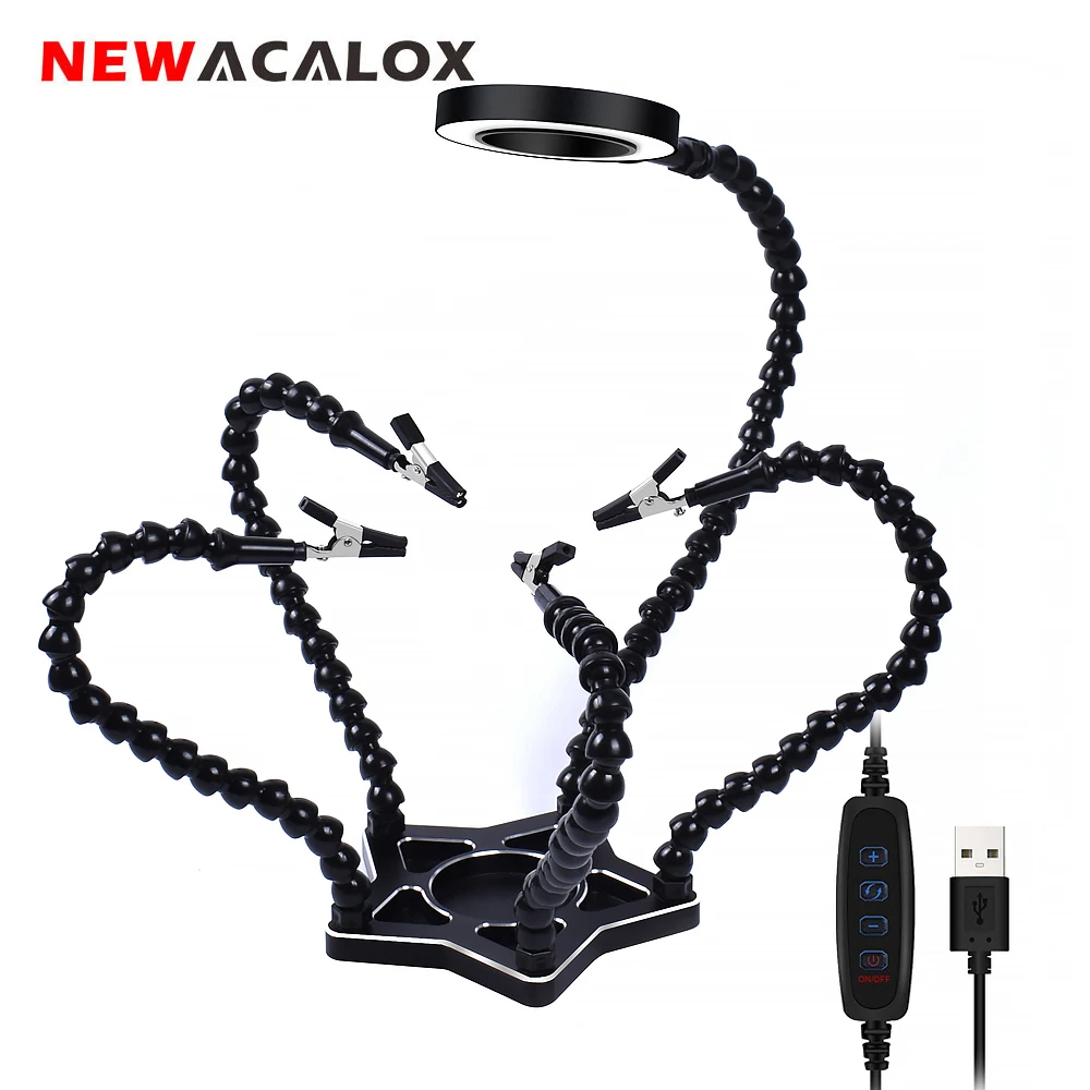 Подставка для пайки NEWACALOX, 3X светодиодный увеличительное стекло с подсветкой, 5 шт., гибкие рычаги, держатель печатной платы, паяльная станция