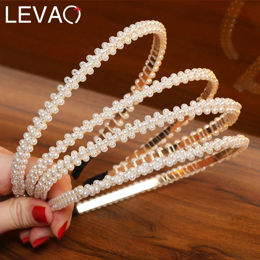 Levao блестящие стразы жемчуг и сердечком и повязка на голову для девочек из бисера голове ободок повязка на голову тонкий сплав лента для волос для женщин аксессуары для волос