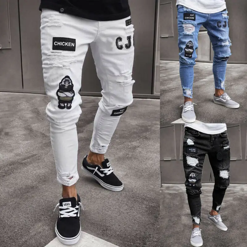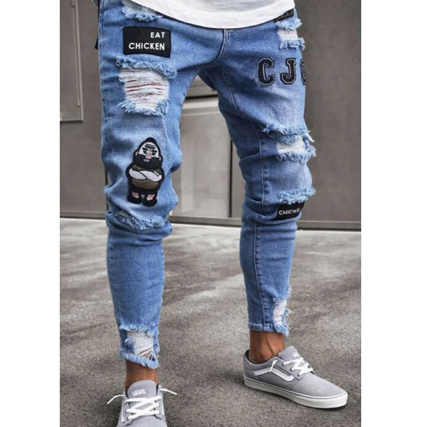 Мужские рваные зауженные джинсы, облегающие зауженные джинсы с дырками, обтягивающие зауженные джинсы, джинсовые брюки