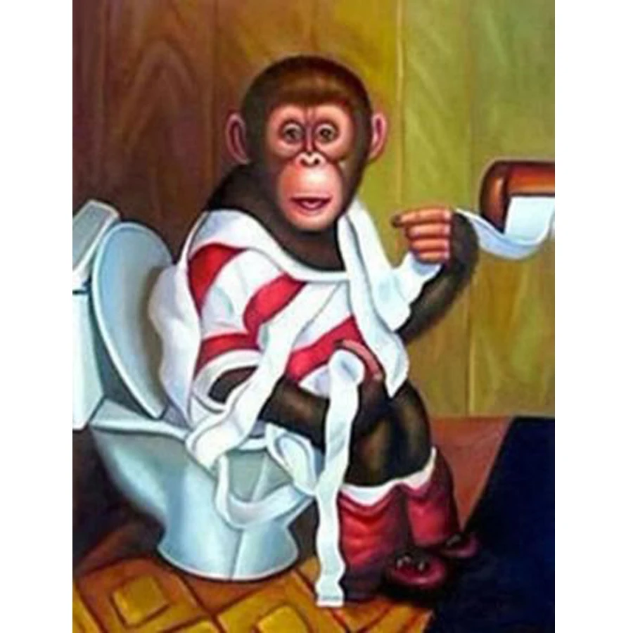 Набор для алмазной вышивки Обезьяна толиет, картина 5D сделай сам из полноразмерных страз, вышивка крестиком, мозаика, домашний декор для унитаза, комнаты AA173