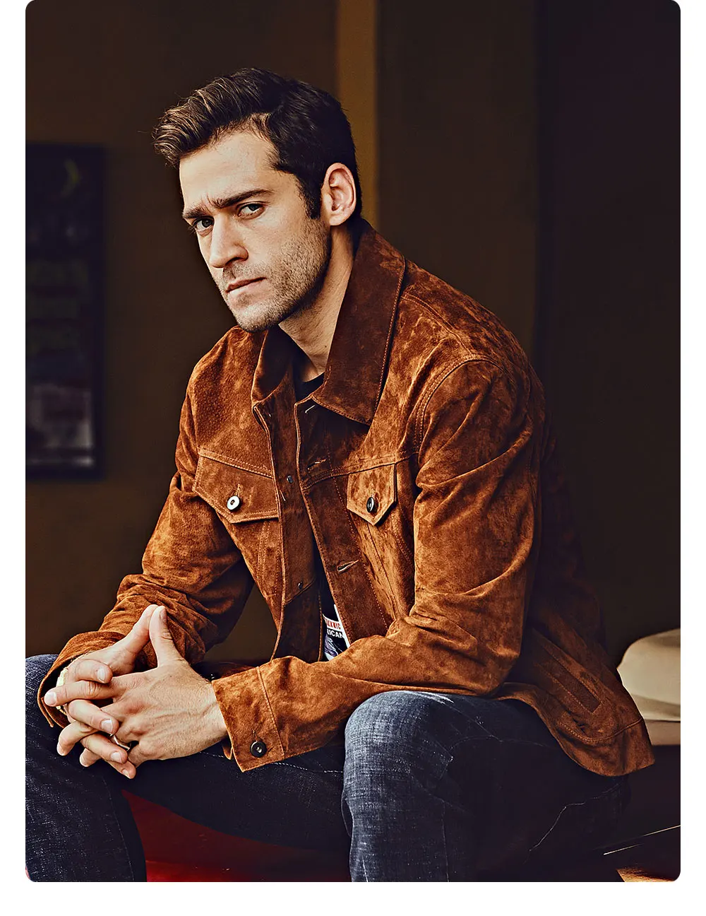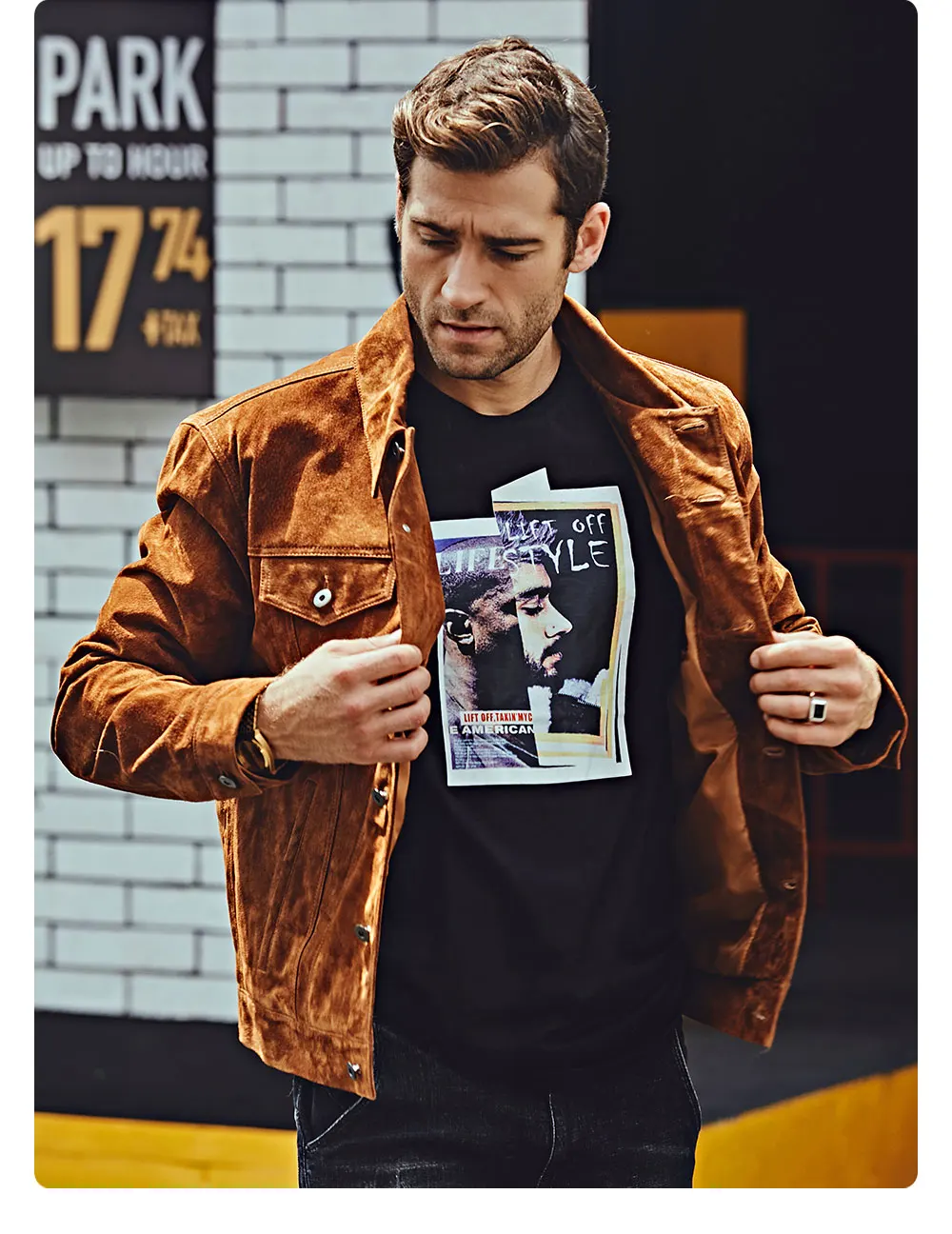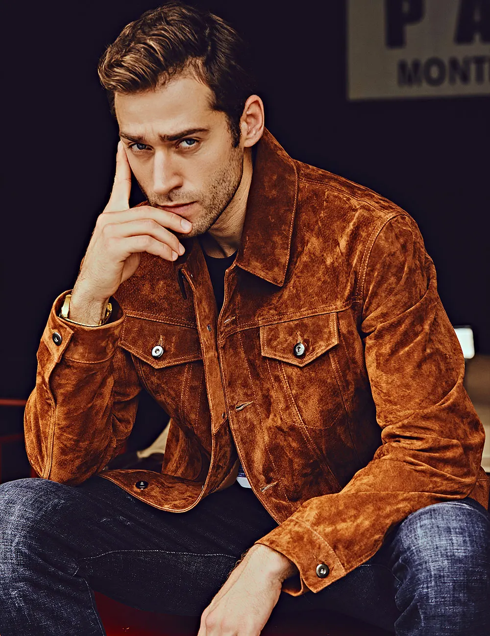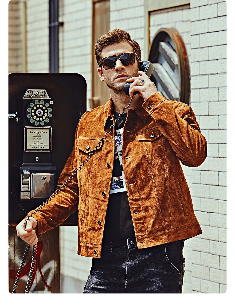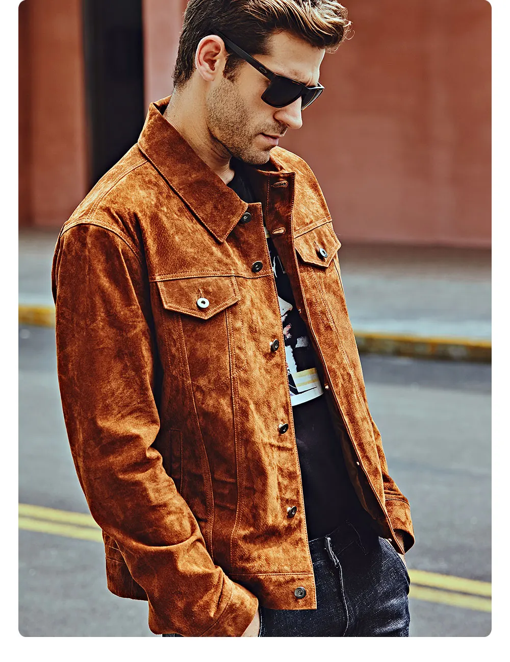 Мужская джинсовая куртка FLAVOR, коричневая куртка из натуральной свиной шкуры, осеннее пальто из натуральной кожи